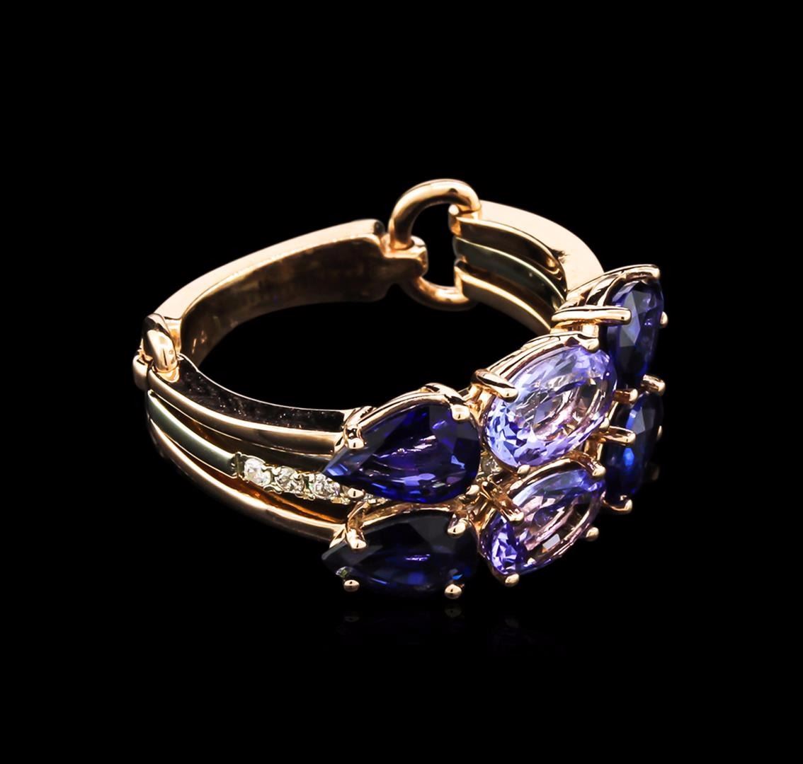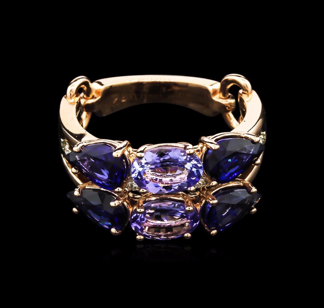 One ring featuring: 14KT rose and white gold weighing 5.24 grams containing four sapphires with a total weight of 2.63ct, two tanzanites with a total weight of 1.50ct and 17 diamonds with a total weight of 0.18ct.