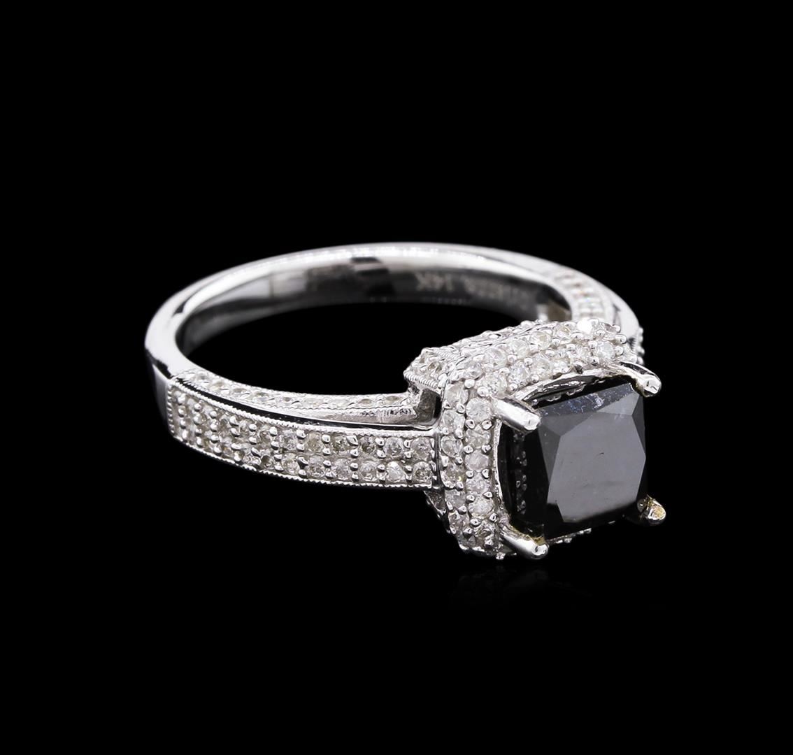 One electronically tested 14KT white gold ladies cast black and white diamond ring. The featured black diamond is set within a white diamond bezel supported by an elaborate white diamond set under gallery and white diamond set shoulders, completed by a two and one-half millimeter wide band. Bright polish finish with milgrain detailing. Trademark is Orianne. Identified with markings of "14K". Condition is new, good workmanship. Containing: One prong set princess cut diamond, measuring 6.10 x 5.80 x 5.50mm (depth est.), 10.00.%. GTCF approximate weight of 1.93ct. Indications of multiple laboratory enhancements. The specific gravity of black diamond is 3.120 to 3.165. Diamond tester results are non-reactive. Graded in the setting. Clarity Déclassé‚. Color: Fancy Black; Irradiated. Depth: 94.8%. Table: 84.4%. One Hundred Fifty-Six bead set round brilliant cut diamonds, measuring 1.10 - 1.00 x 0.63mm (depth est.) approximate total weight of 156 Stones = 0.71ct. Graded in the setting. Clarity: SI-1 to I-1. Color: H - J. Total Weight of Diamonds 2.64ct. AIG Appraised at $5,305.00.