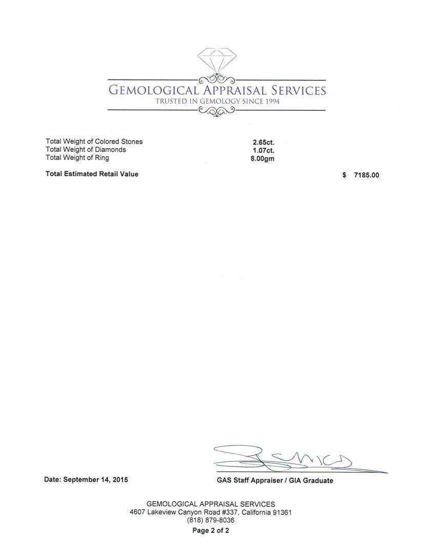Regarding Appraised Jewelry, Watches and Loose Stones –