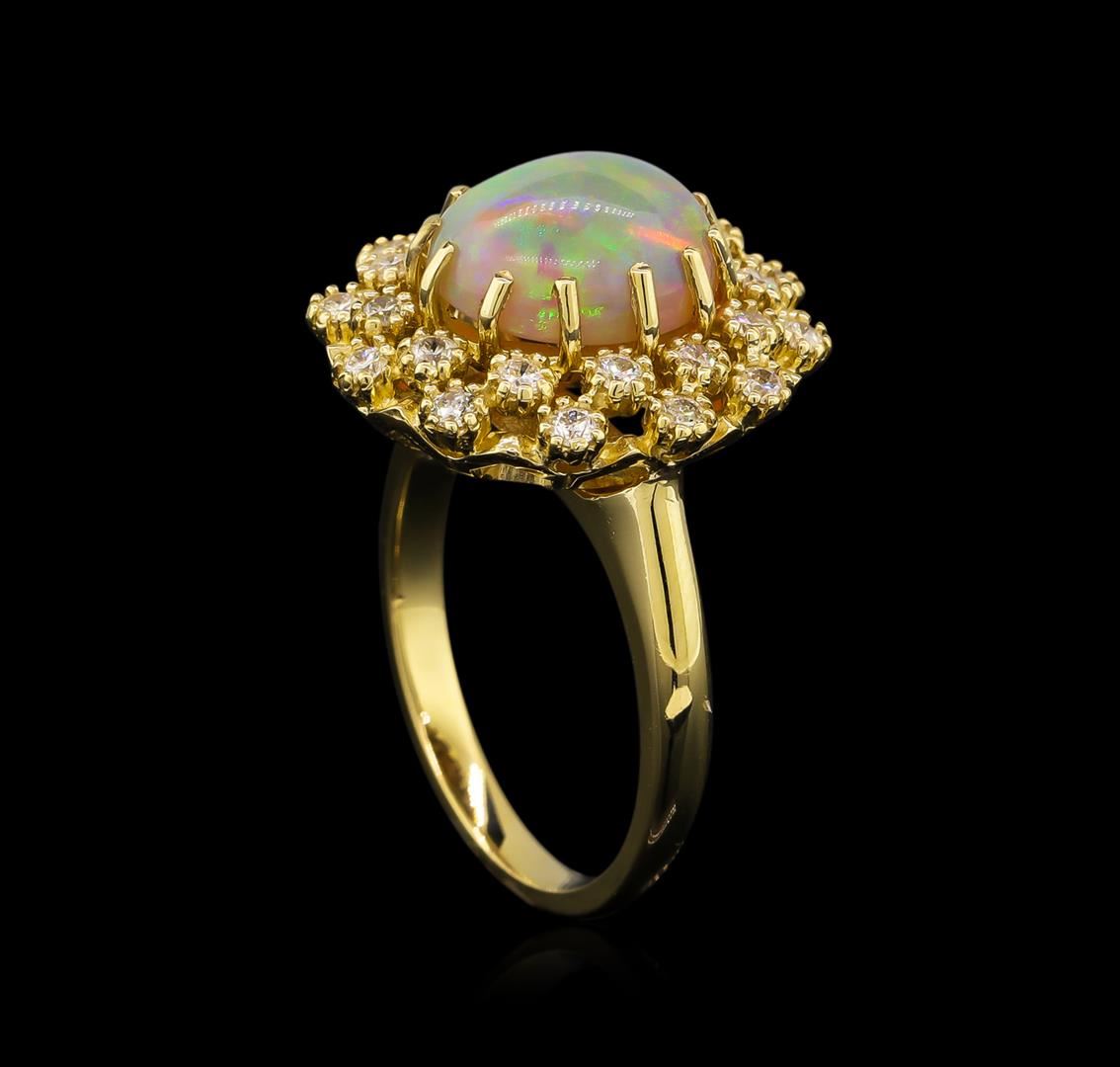 One ring featuring: 14KT yellow gold weighing 6.73 grams containing one opal with a total weight of 2.65ct and side diamonds with a total weight of 0.58ct.