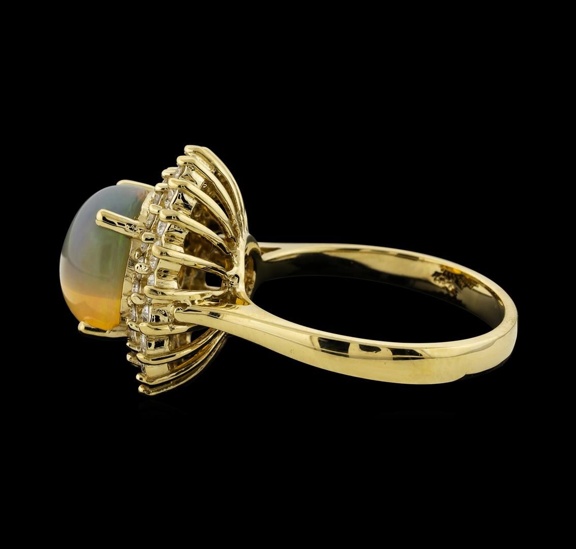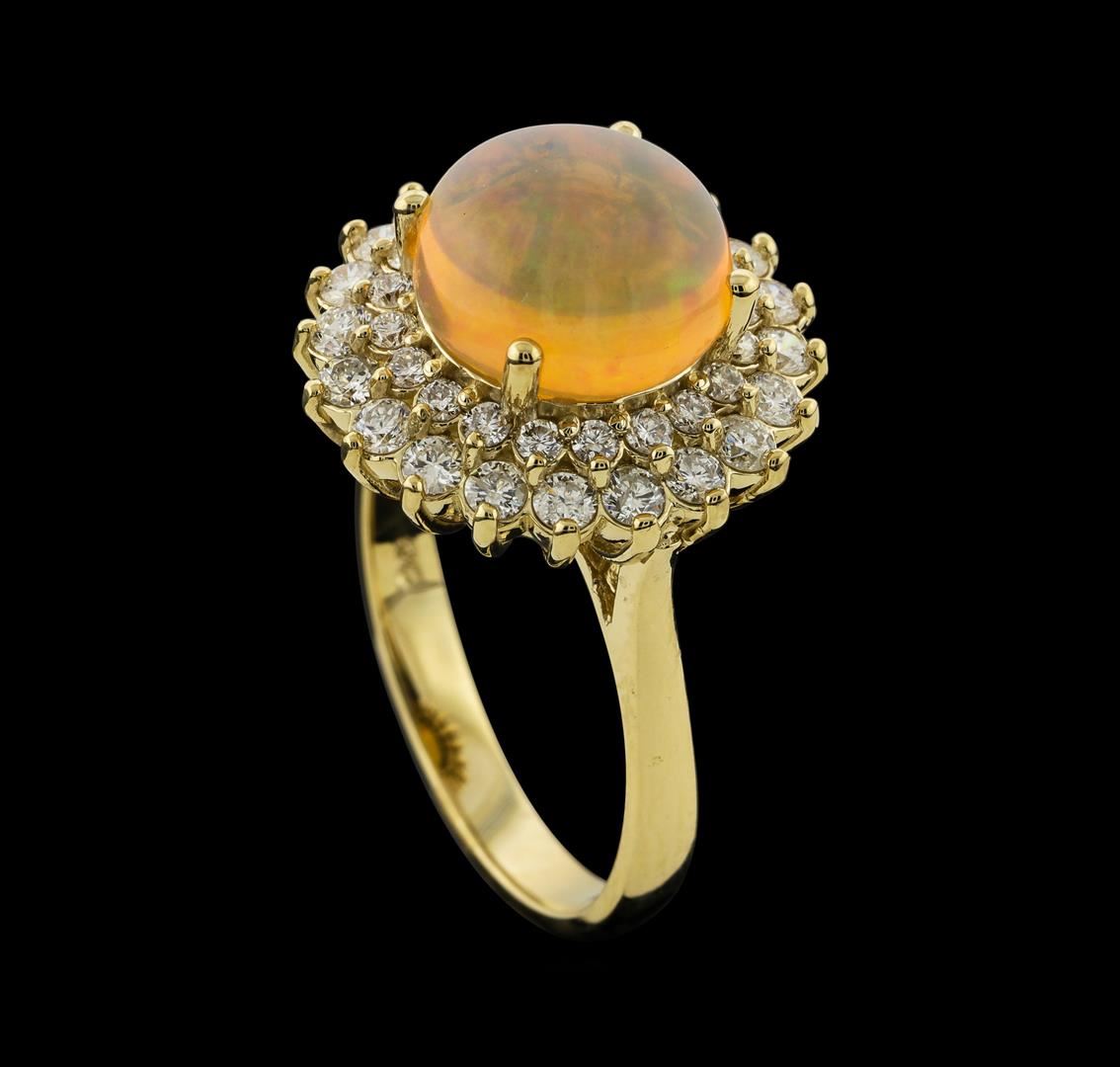 One ring : 14KT yellow gold weighing 5.60gm containing opal with a total weight of 2.65ct and diamonds weighing 0.90ctw.