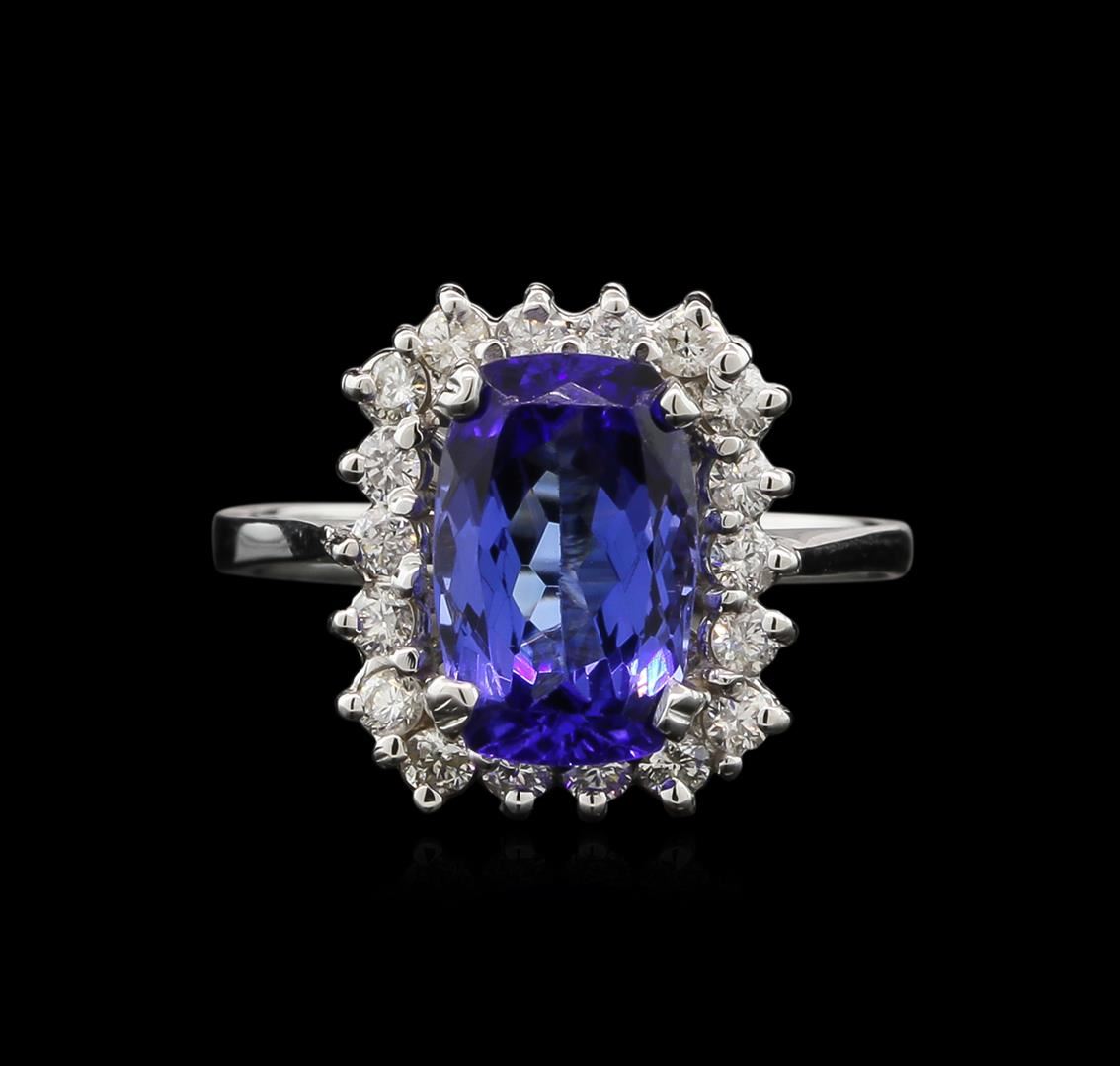 One ring featuring: 14KT white gold weighing 3.06 grams containing one tanzanite center stone with a total weight of 2.66ct and 18 diamonds with a total weight of 0.39ct.