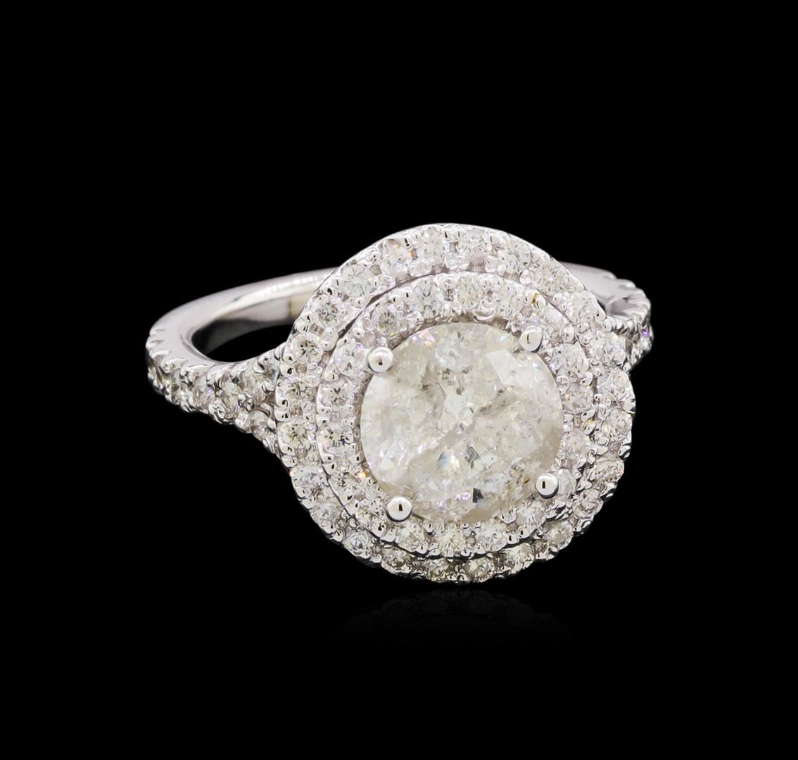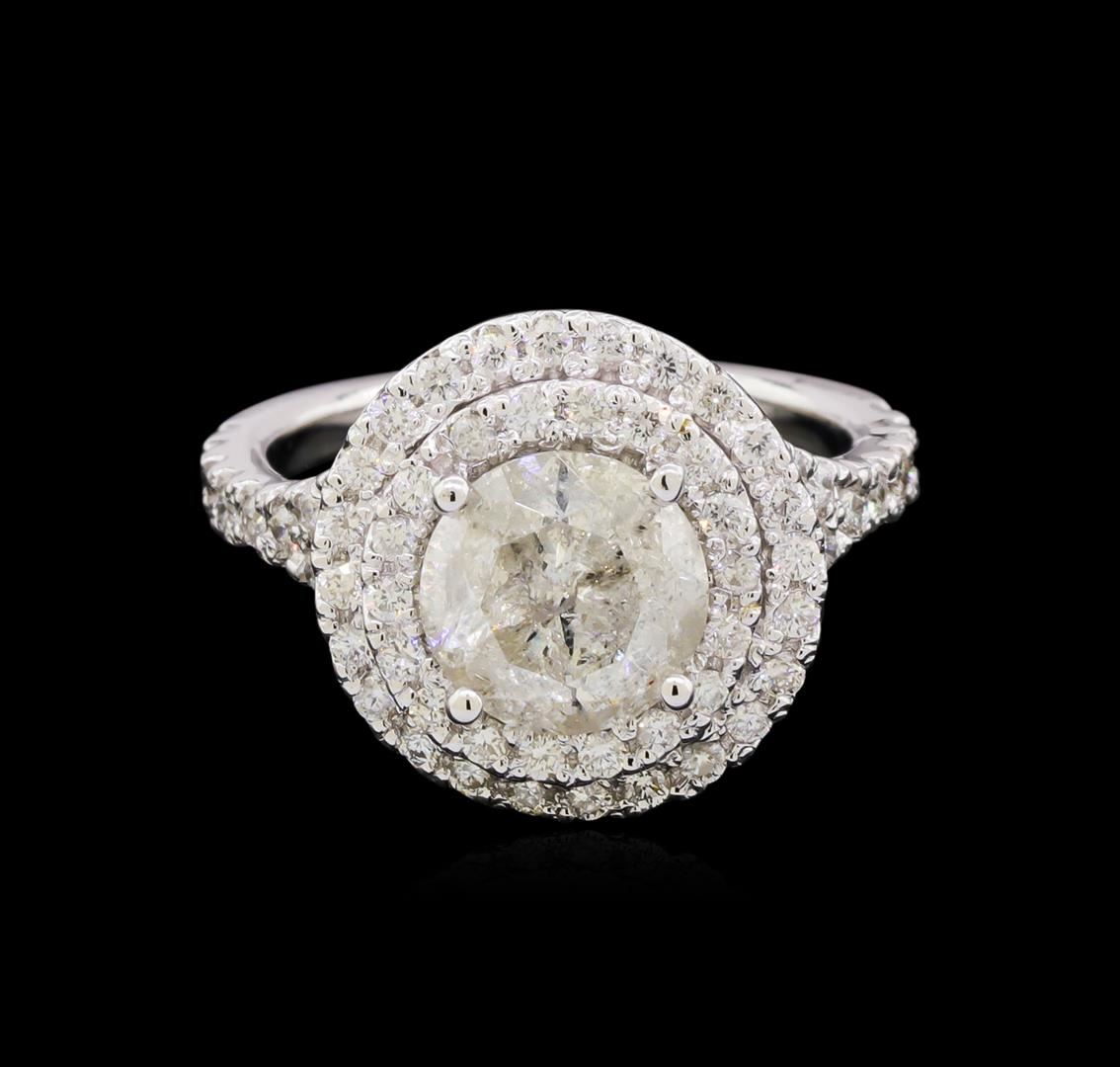 One electronically tested 14KT white gold lady's cast wedding ring with a split shank double basket halo with a bright polish finish. The featured lady's ring has a shank measuring 2.06 millimeters wide. Identified with markings of "14K". Condition is new, good workmanship. Containing: One prong set round brilliant cut diamond, measuring 7.99 - 7.95 x 5.01mm (depth est.) , 5.00.%. GTCF approximate weight of 2.06ct. Graded in the setting. Clarity: I-3. Color: Good Sixty-Six prong set round brilliant cut diamonds, measuring 1.40 - 1.30 x 0.84mm (depth est.) approximate total weight of 66 Stones = 0.62ct. Graded in the setting. Clarity: SI-1 to I-1. Color: G - Good. Total Weight of Diamonds 2.68ct. Total Weight of Ring 6.30gm. GAS Appraised at $8,280.00.