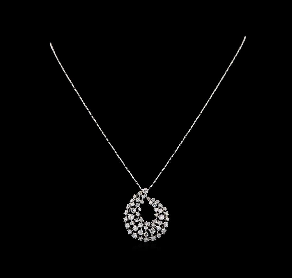 One electronically tested 14KT white gold lady's combination cast & assembled crescent shape pendant & chain 18.0" long, 0.8mm diamond cut barrel link with a lobster claw clasp with a bright polish finish. Identified with markings of "14K". Condition is new, good workmanship. Containing: Thirteen prong set round brilliant cut diamonds, measuring 3.10 - 2.90 x 1.86mm (depth est.) approximate. Total Weight of 13 Stones = 1.30ct. Graded in the setting. Clarity: SI-1 to I-1. Color: H - ICut Good Thirty-Nine prong set round brilliant cut diamonds, measuring 2.50 - 1.80 x 1.33mm (depth est.) approximate. Total Weight of 39 Stones = 1.40ct. Graded in the setting. Clarity: SI-1 to I-1. Color: H - ICut Good. Total Weight of Diamonds 2.70ct. Total Weight of Pendant & Chain 7.50gm AIG Appraised at $7590.00. GAS Appraised at $7,590.00.