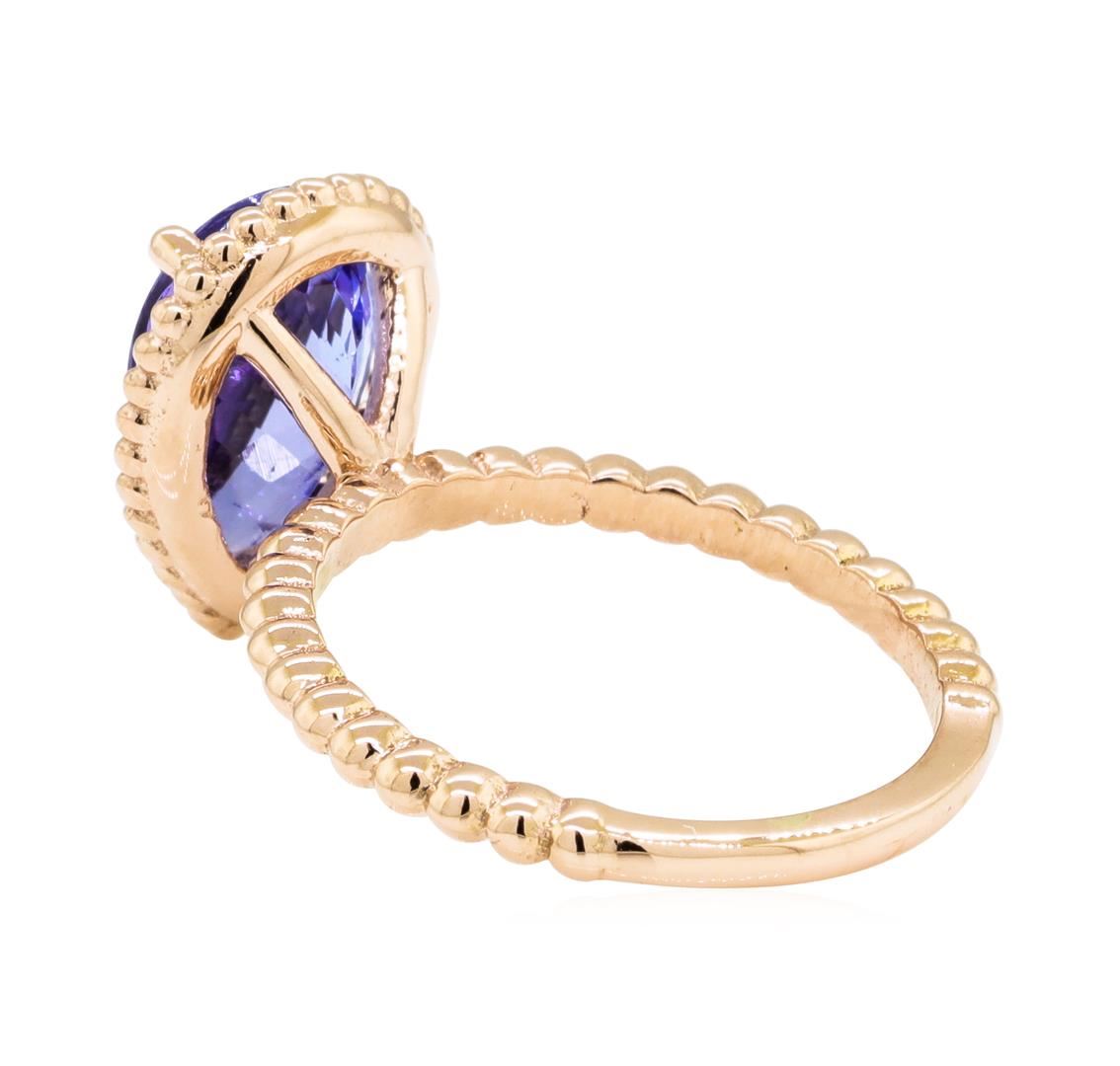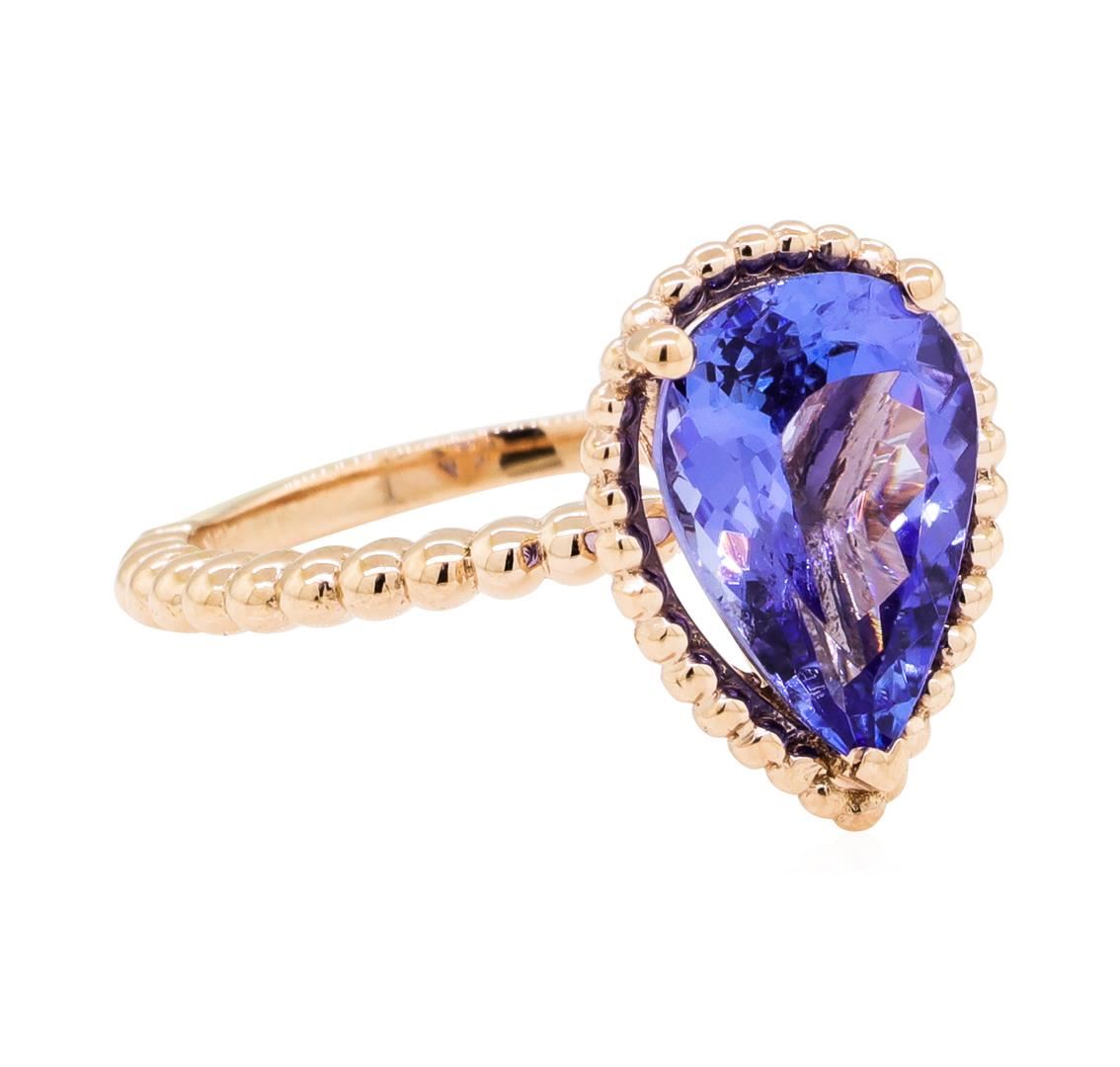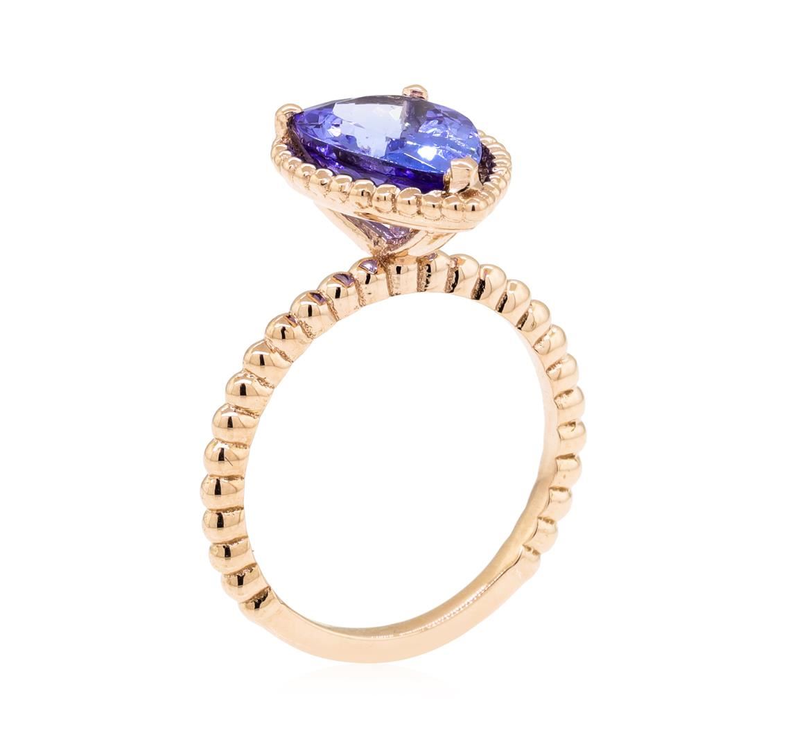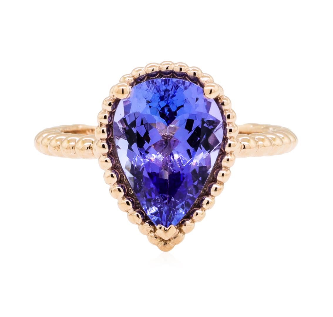 One lady's ring featuring 14KT rose gold weighing 3.5 grams containing one tanzanite weighing 2.72ct.