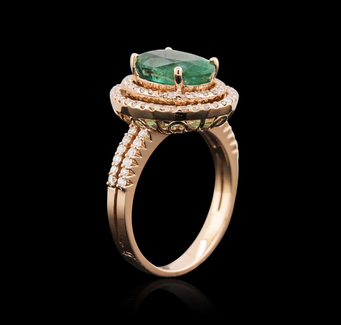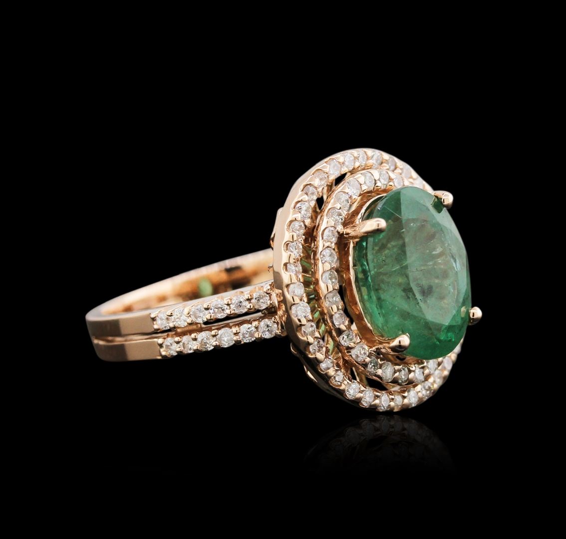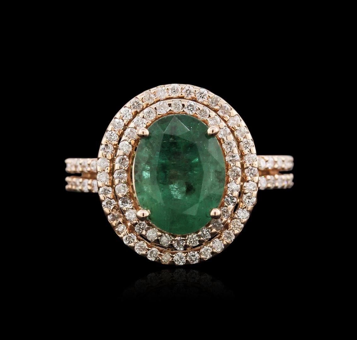 One ring featuring: 14KT rose gold weighing 5.16 grams containing one emerald center stone with a total weight of 2.72ct and 88 diamonds with a total weight of 0.53ct.