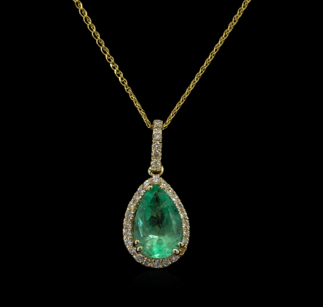 One pendant with chain featuring: 14KT yellow gold weighing 1.89 grams containing one emerald center stone with a total weight of 2.73ct and 30 diamonds with a total weight of 0.29ct.