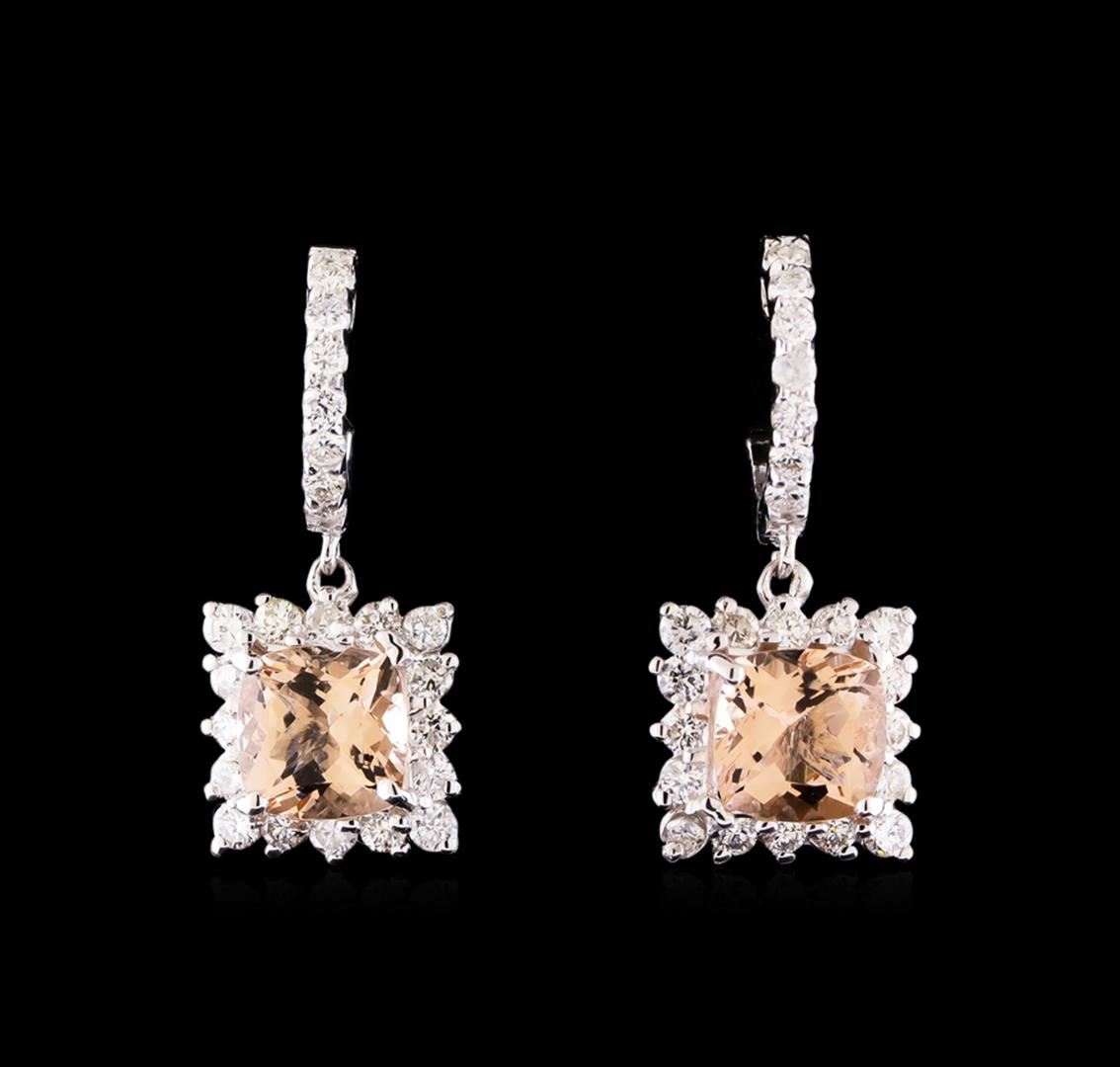 One pair of earrings: 14KT white gold weighing 5.50gm containing morganites with a total weight of 2.74ctw and diamonds weighing 1.23ctw.