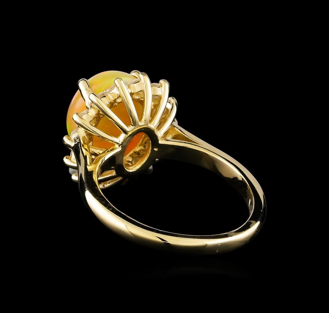 One ring featuring: 14KT yellow gold weighing 4.96 grams containing one opal weighing 2.74ct and diamonds weighing 0.80ctw.