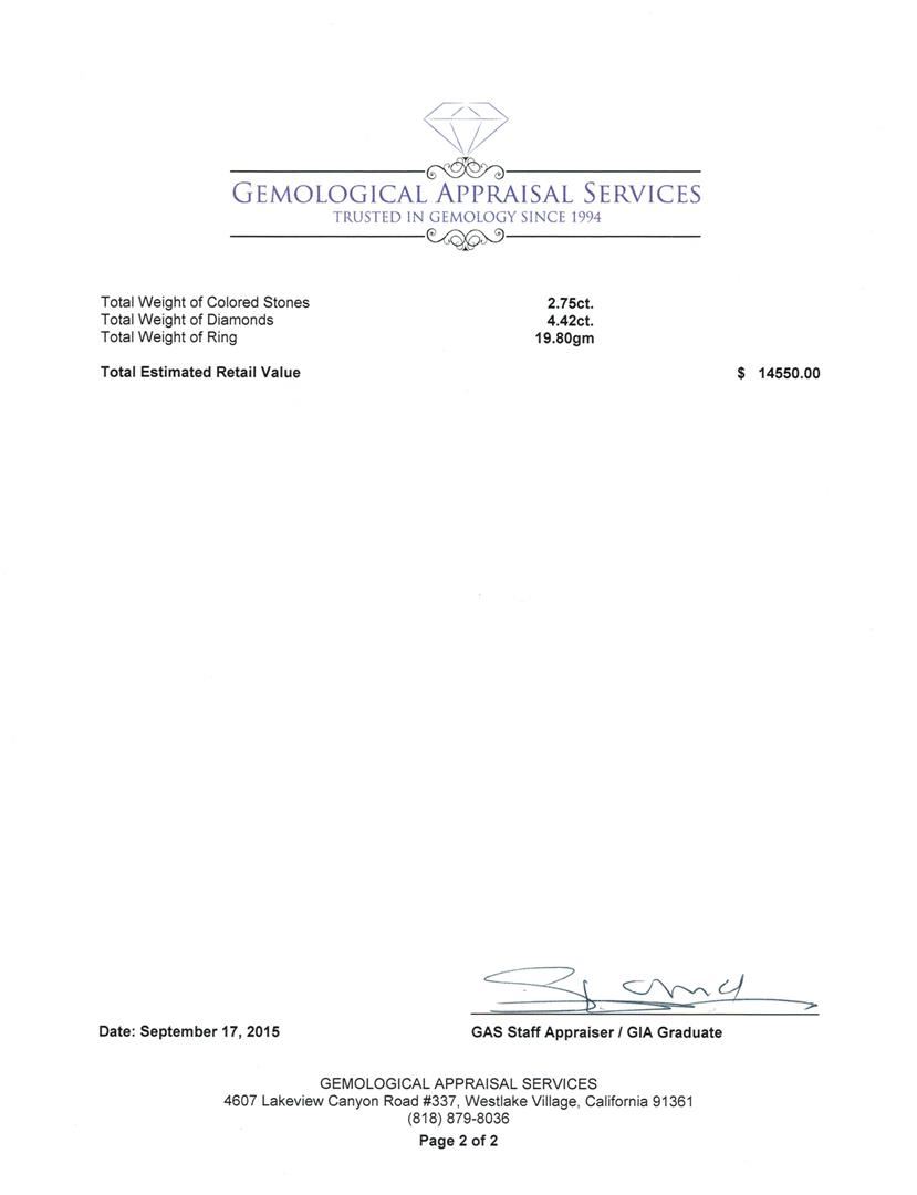 Not all Jewelry, watches or loose stones are appraised and the appraisals are provided for bidders only in certain instances at the discretion of SAA. Our appraisals are conducted by independent third-party appraisal firms. Such firms may be certified GIA Gemologists or have education in the industry or alternative certifications. Appraisals should be used for verification of gemstone and/or metal weight, size, and grade only, not actual value for resale or insurance purposes. Appraisal value should be not considered for actual value, as price varies greatly from retail locations and other merchants in different geographic locations. All Items auctioned by SAA should not be purchased with a view or expectation toward resale for appraisal price given, or to make a profit. The ultimate value for which an item can be resold may vary drastically from the appraisals listed by SAA.