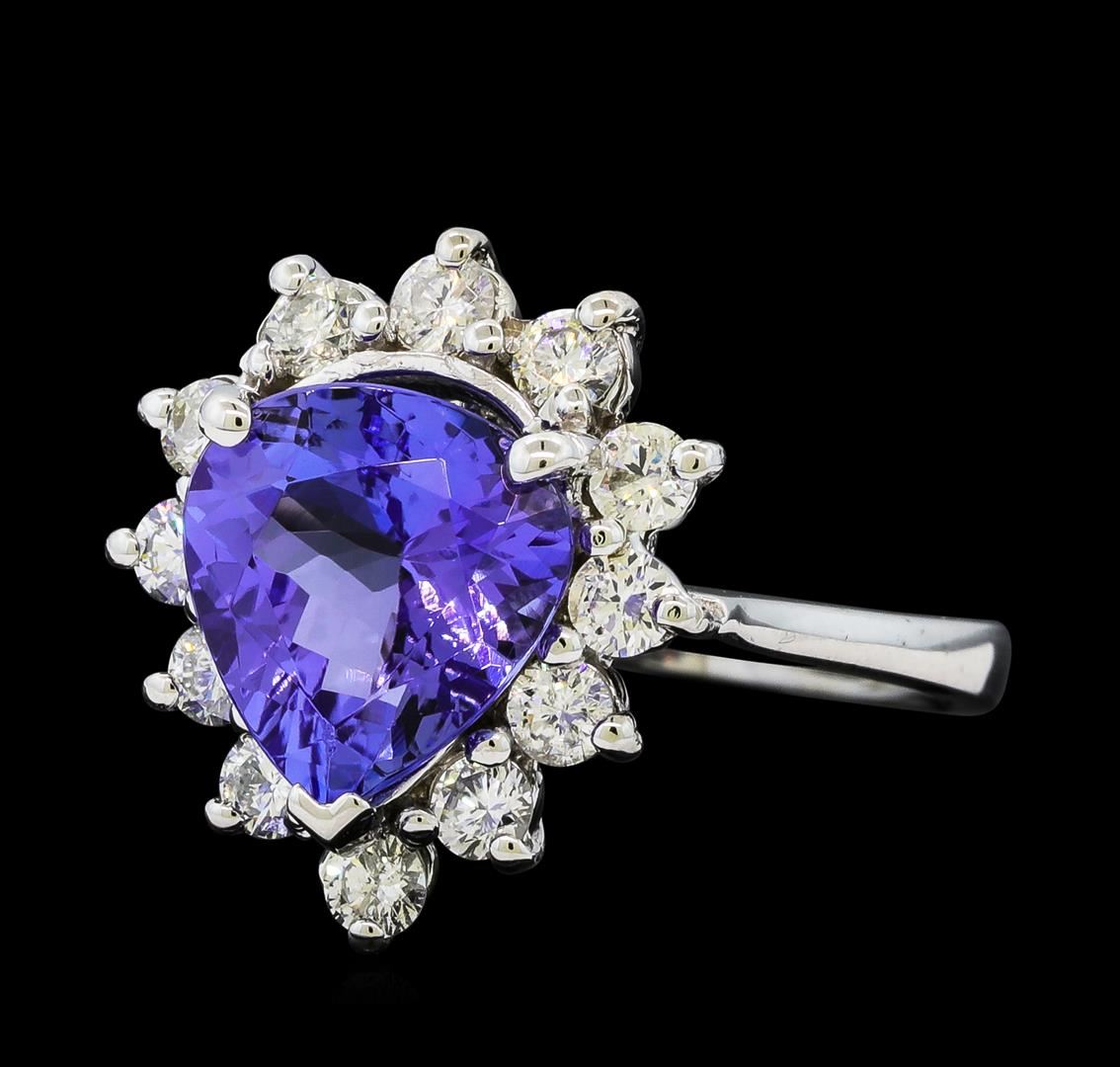 One Tanzanite and Diamond Ring including: 14KT White Gold weighing a total of 3.56 grams, Tanzanite weighing a total of 2.76ct, and 12 Diamonds weighing a total of 0.62ctw.