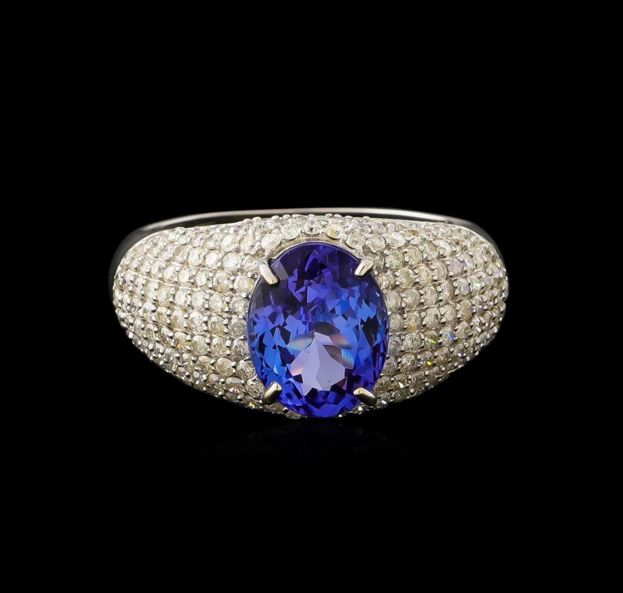2.77 ctw Tanzanite and Diamond Ring - 14KT White Gold