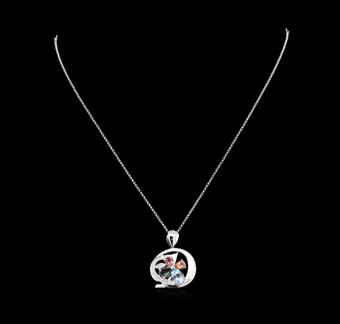 One pendant featuring: 14KT white gold weighing 5.28 grams containing four mixed color tourmalines weighing 2.78ctw and diamonds weighing 0.22ctw.