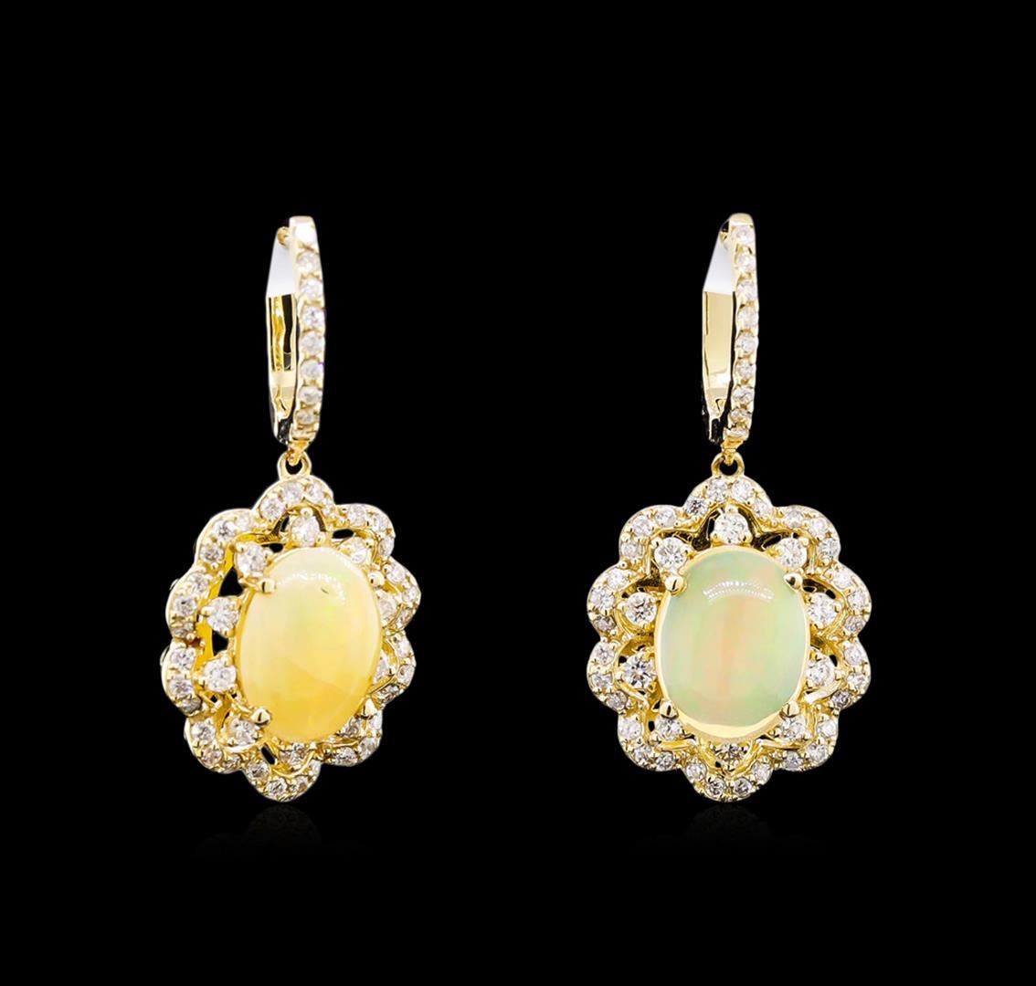 One pair of earrings featuring: 14KT yellow gold weighing 5.06 grams containing two opals with a total weight of 2.78ct and diamonds with a total weight of 0.89ct.