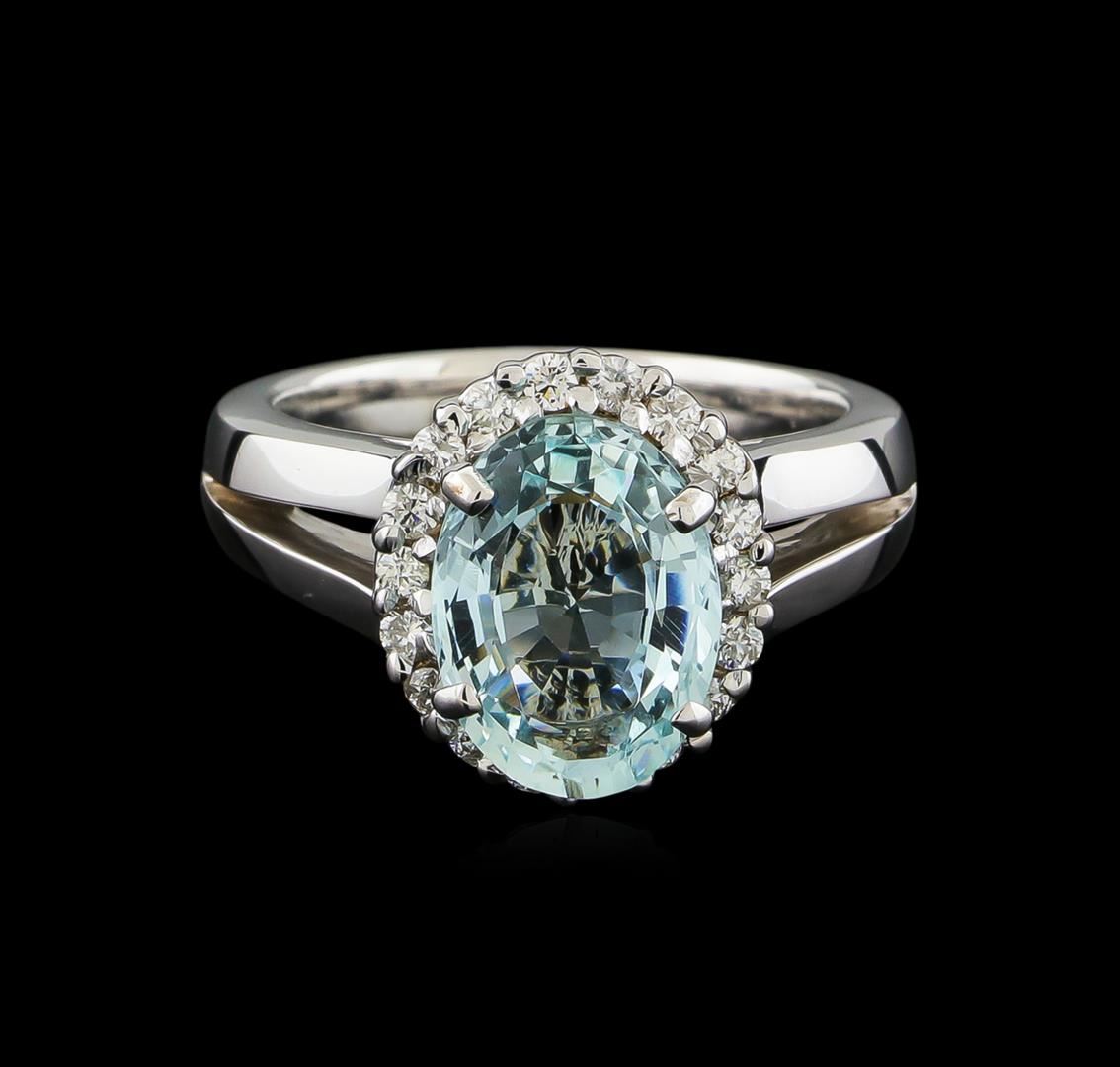 One Ring featuring: 14KT White Gold weighing 8.05 grams containing one Aquamarine center stone with a total weight of 2.8ct and Diamonds with a total weight of 0.3ct.