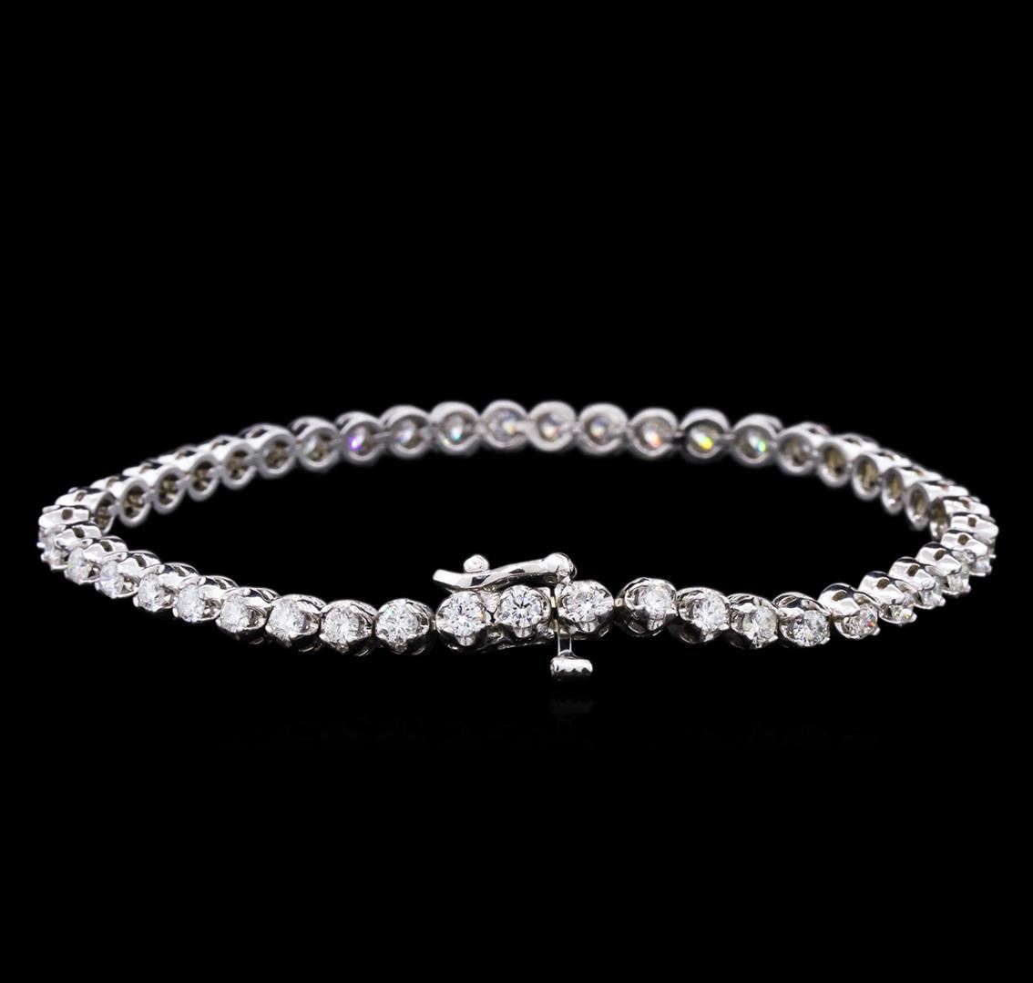 One electronically tested 14KT white gold lady's combination cast & assembled straight line tennis bracelet with a tongue clasp with foldover safety with a bright polish finish. The featured lady's bracelet measures 7 inches in length. Identified with markings of "14K". Condition is new, good workmanship. Containing: Forty-Five prong set round brilliant cut diamonds, measuring 2.60 - 2.50 x 1.58mm (depth est.) approximate total weight of 45 Stones = 2.80ct. Graded in the setting. Clarity: SI-1 to I-1. Color: G - I. Cut Good. Total Weight of Diamonds 2.80ct. Total Weight of Bracelet 12.10gm. GAS Appraised.
