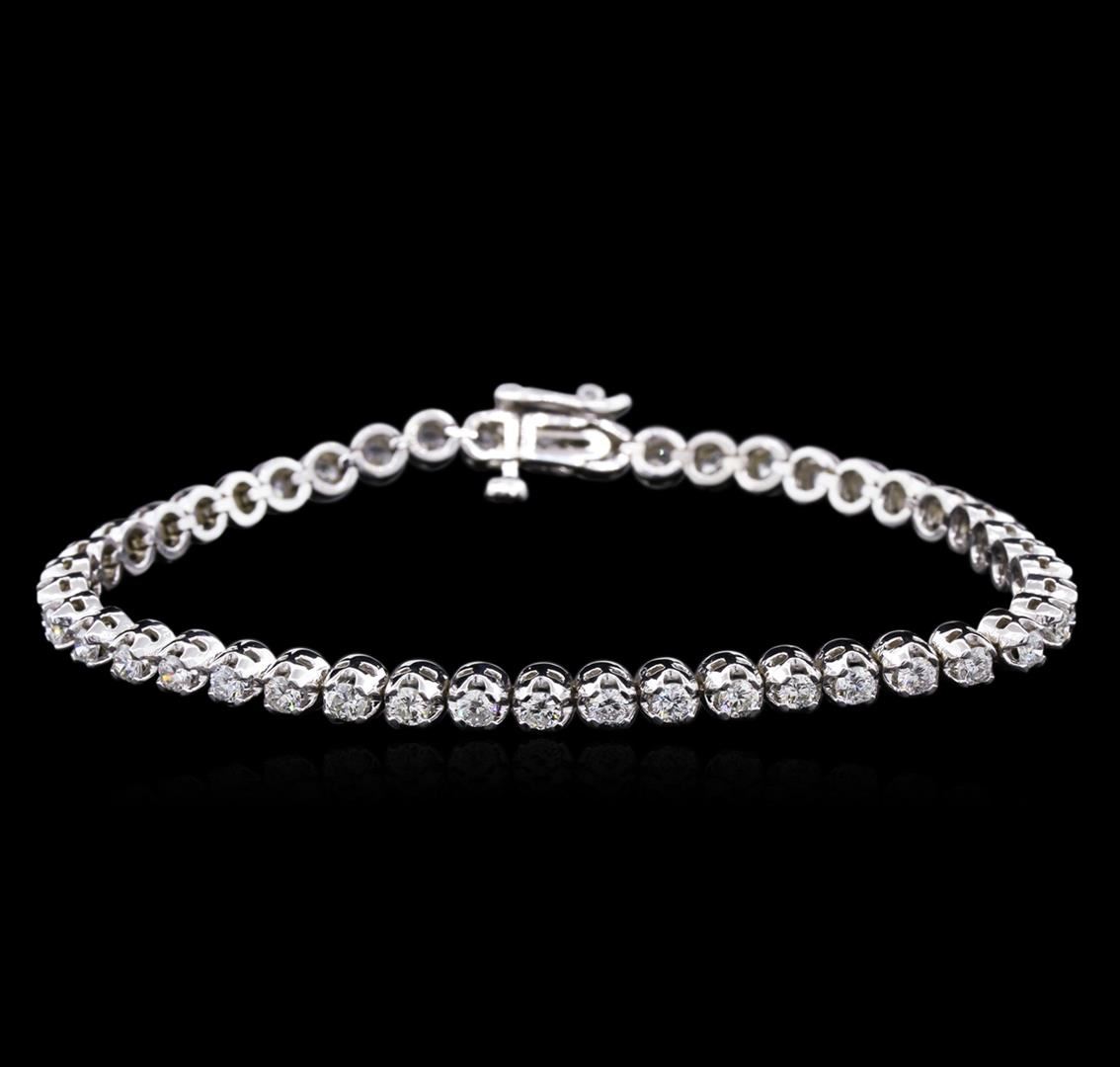 One electronically tested 14KT white gold lady's combination cast & assembled straight line tennis bracelet with a tongue clasp with foldover safety with a bright polish finish. The featured lady's bracelet measures 7 inches in length. Identified with markings of "14K". Condition is new, good workmanship. Containing: Forty-Five prong set round brilliant cut diamonds, measuring 2.60 - 2.50 x 1.58mm (depth est.) approximate total weight of 45 Stones = 2.80ct. Graded in the setting. Clarity: SI-1 to I-1. Color: G - I. Cut Good. Total Weight of Diamonds 2.80ct. Total Weight of Bracelet 12.10gm. GAS Appraised.