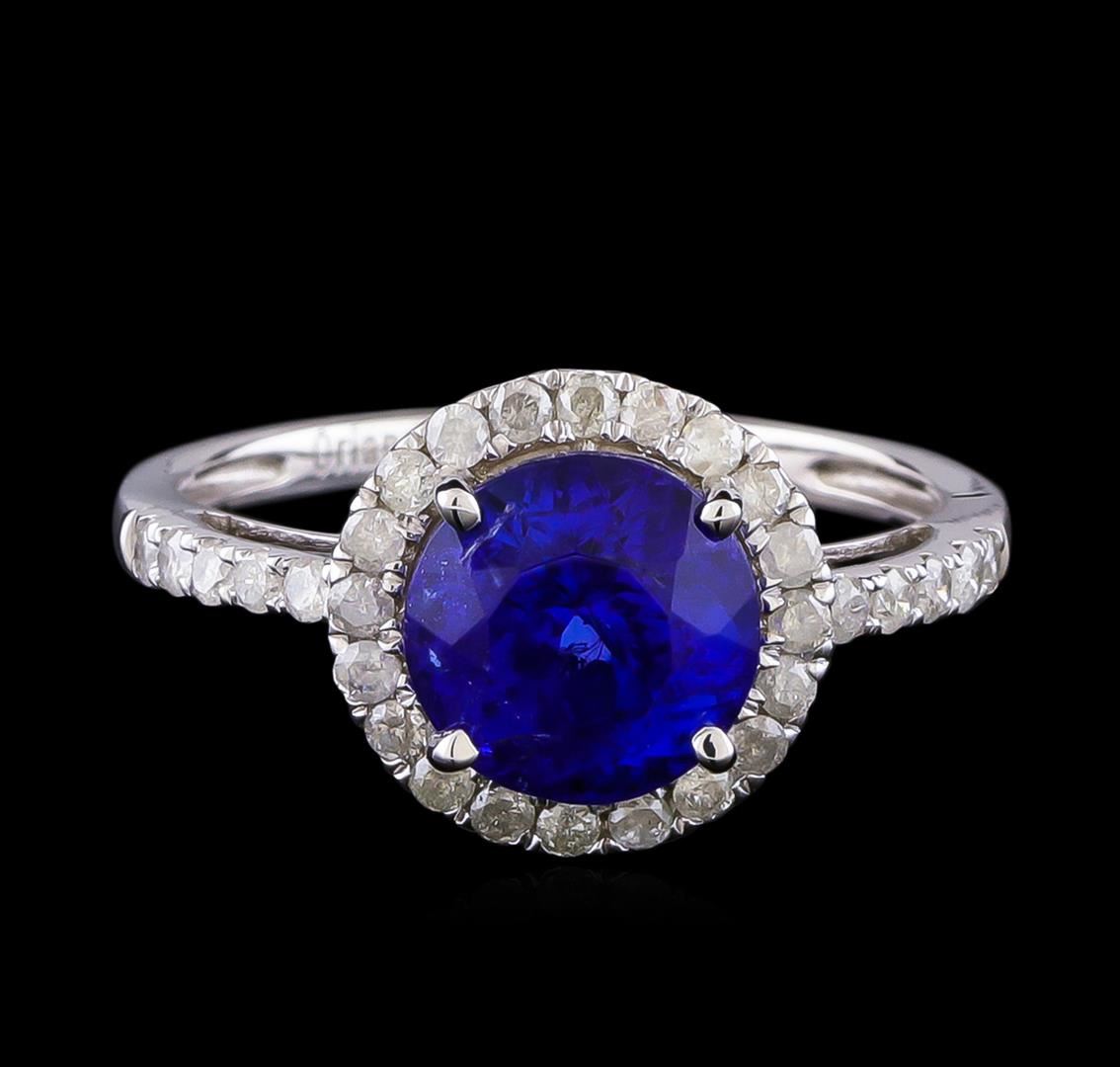 One electronically tested 14KT white gold ladies cast tanzanite and diamond ring with a bright polish finish. The featured tanzanite is set within a diamond bezel supported by diamond set shoulders, completed by a one and one-half millimeter wide band. Trademark is Orianne. Identified with markings of "14K". Condition is new, good workmanship. Containing: One prong set round mixed cut natural tanzanite approximate weight of 2.80ct., clarity is slightly included, type I, dark, moderately strong, violetish blue color, (GIA vB 7/4), cut is good. Transmitting light with a minimum of distortion, transparent. Naturally occurring internal & external characteristics are present. Graded in the setting. Tanzanite is a very rare gemstone that is only found in the country of Tanzania. Originally discovered in 1967. Tiffany & Company, named the stone Tanzanite. It is found in the Usumburu Mountains that border the Umba Valley of northern Tanzania. Tanzanite occurs in gray, brown, violet, blue, reddish-purple, & green. The gem is interesting because of its exceptional pleochroism. Rotated in different directions a tanzanite will exhibit multiple changes of color. Tanzanite has a low tolerance to ultrasonic cleaning, and should not be cleaned using this method. Thirty prong set round brilliant cut diamonds approximate total weight of 30 Stones = 0.43ct. Graded in the setting. Clarity: I-2 to I-3. Color: H - J. Total Weight of Colored Stones 2.80ct. Total Weight of Diamonds 0.43ct. Total Weight of Ring 2.98gm. AIG Appraised at $6,895.00.