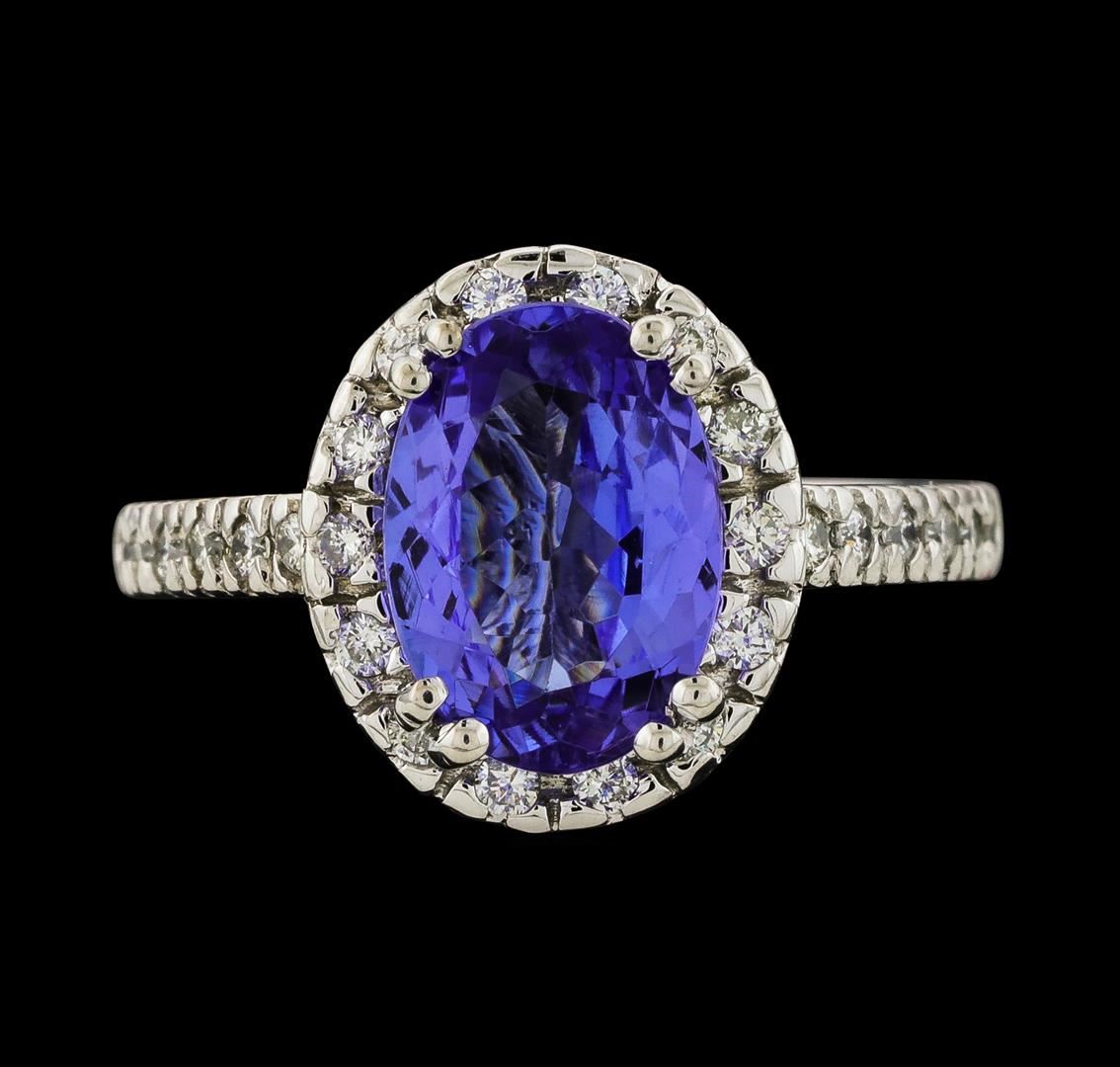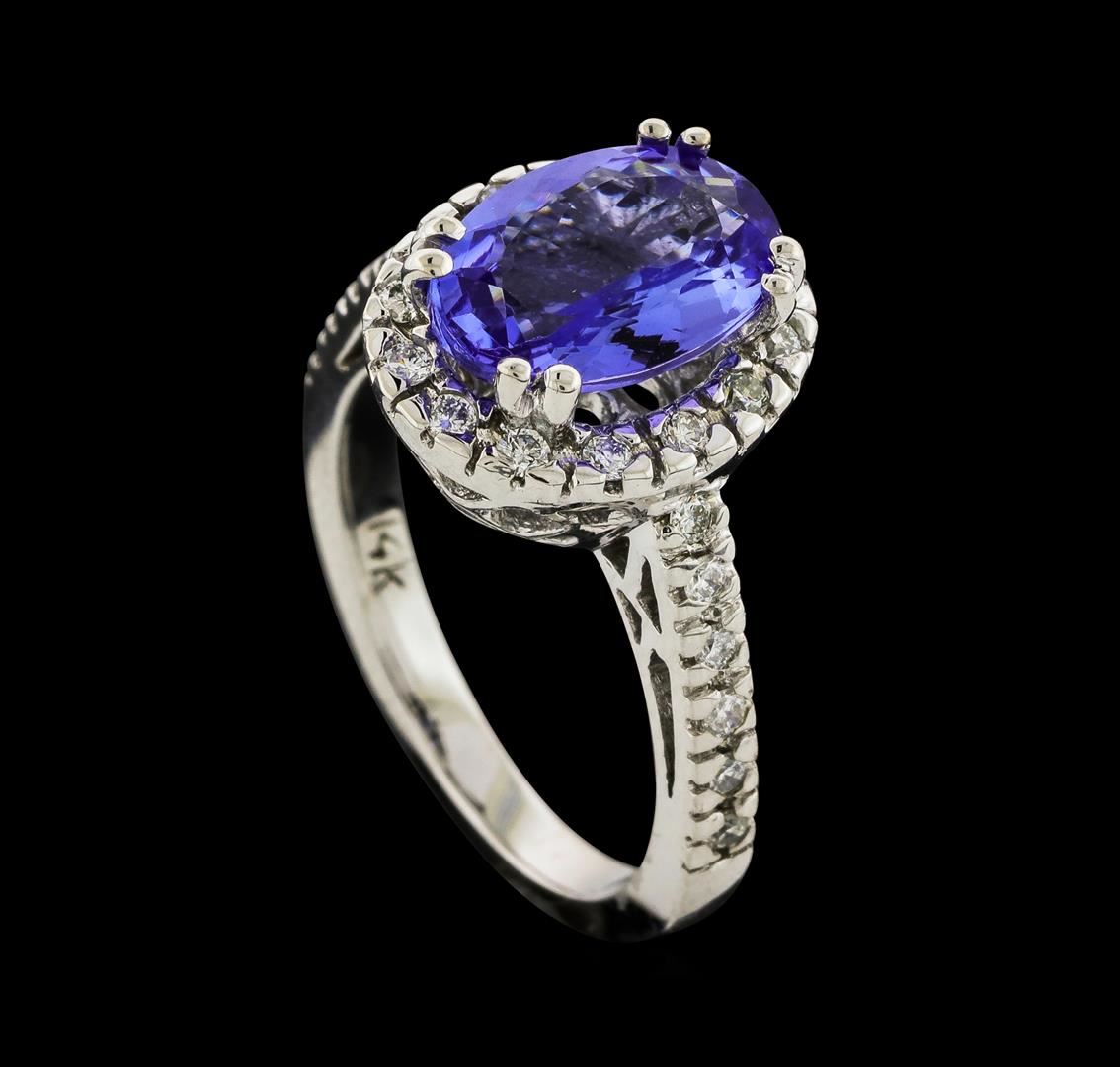 One Tanzanite and Diamond Ring featuring: 14KT White Gold with a total weight of 5.96 grams, Tanzanite with a total weight of 2.80ct, and 26 diamonds with a total weight of 0.38ctw.