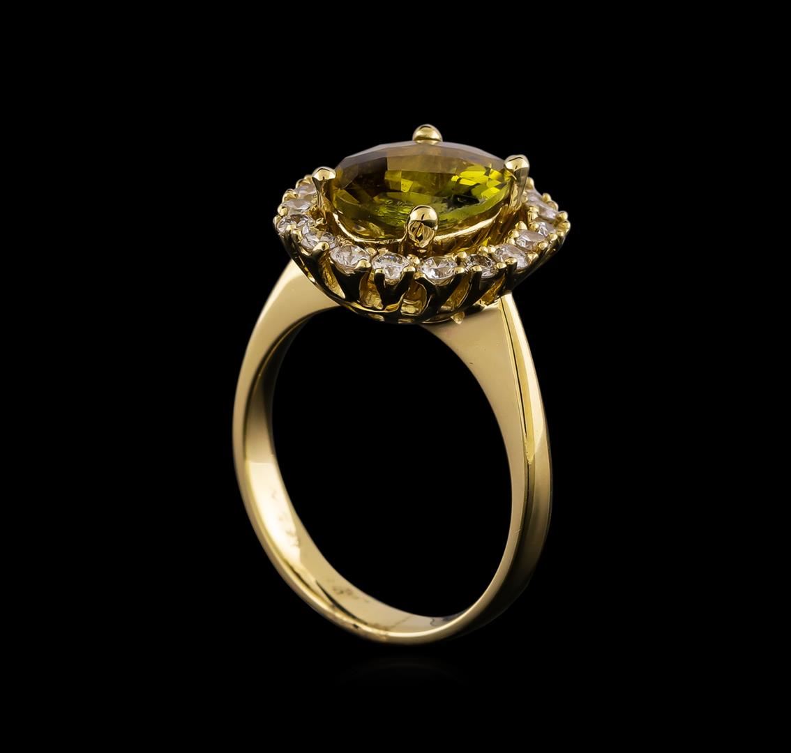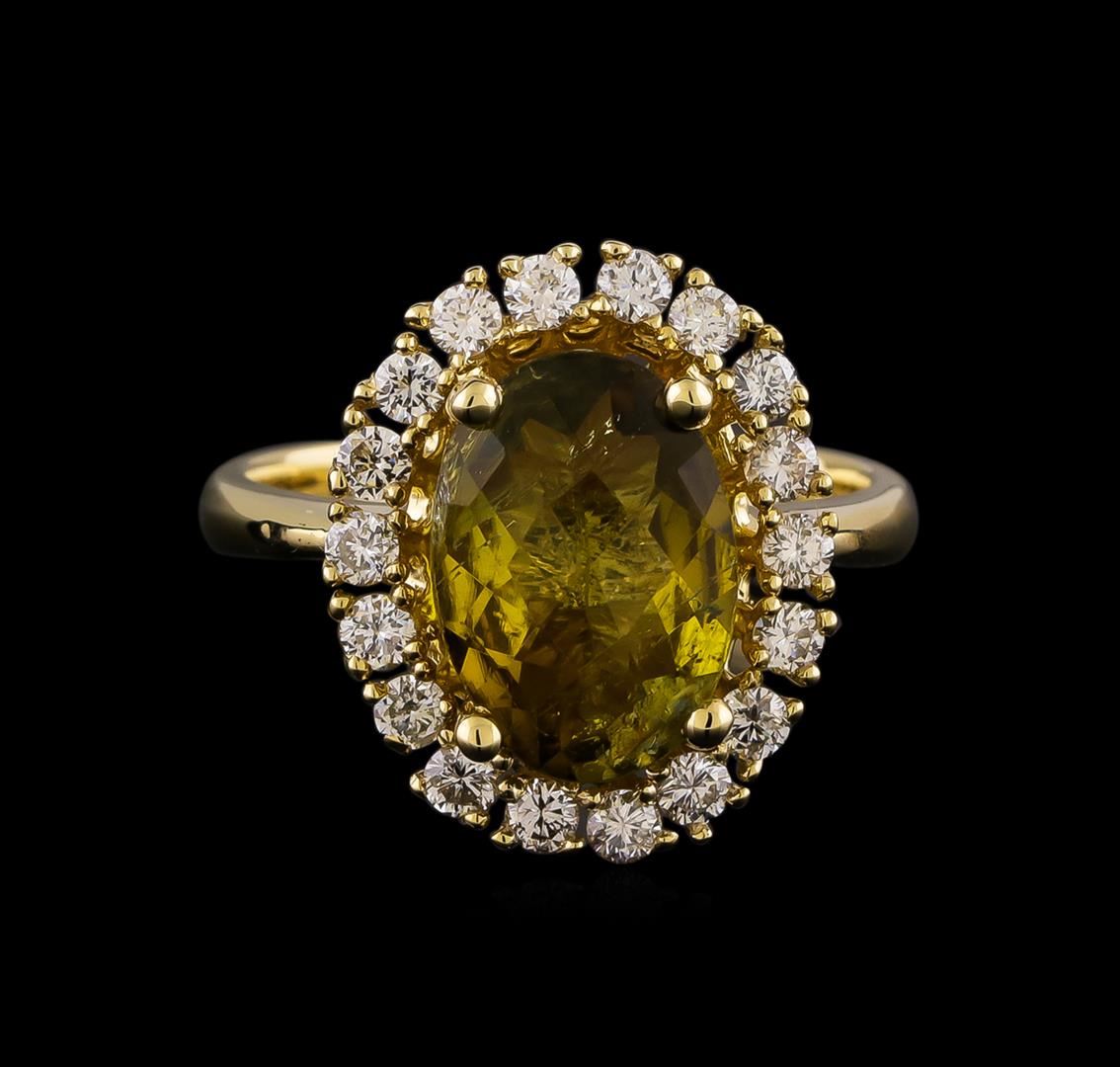 One ring featuring: 14KT yellow gold weighing 5.71 grams containing one Green Turquoise with a total weight of 2.80 ct and diamonds with a total weight of 0.61ctw.