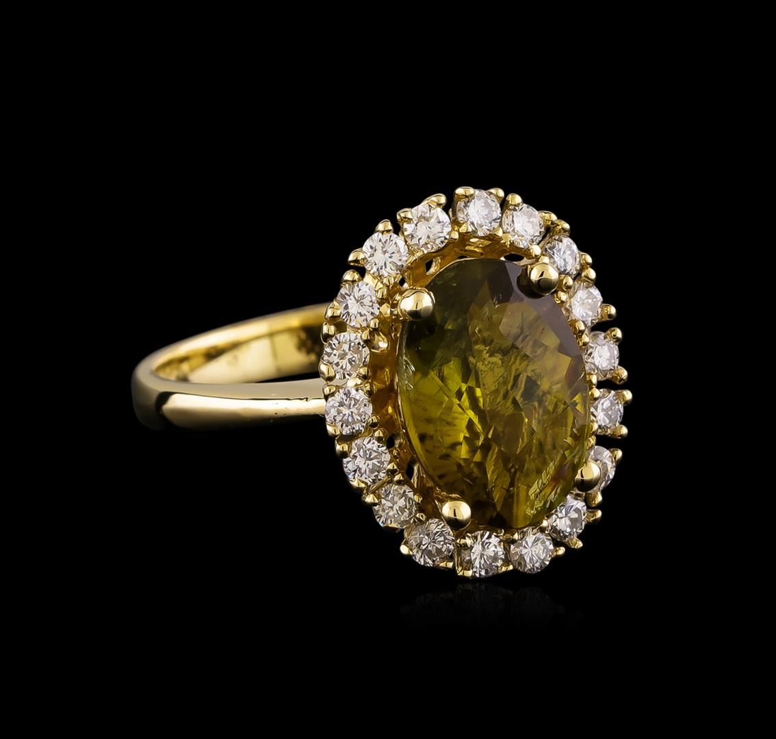 One ring featuring: 14KT yellow gold weighing 5.71 grams containing one Green Turquoise with a total weight of 2.80 ct and diamonds with a total weight of 0.61ctw.