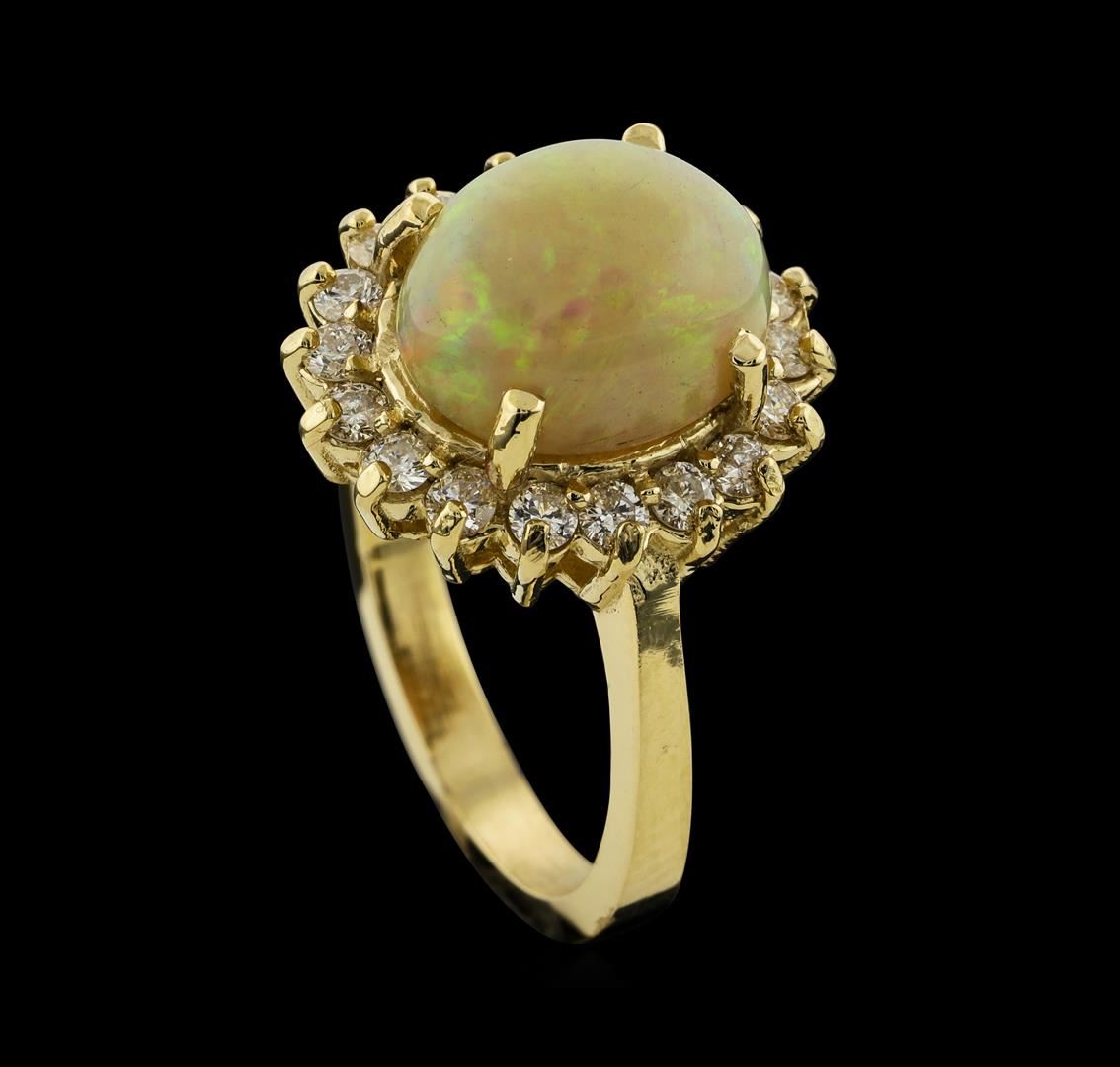 One ring : 14KT yellow gold weighing 5.43gm containing opal with a total weight of 2.82ct and diamonds weighing 0.55ctw.