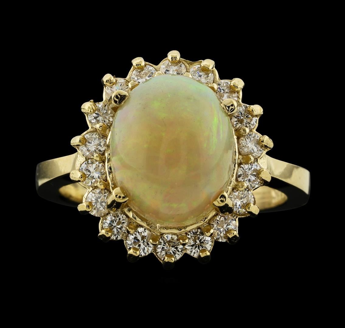 One ring : 14KT yellow gold weighing 5.43gm containing opal with a total weight of 2.82ct and diamonds weighing 0.55ctw.