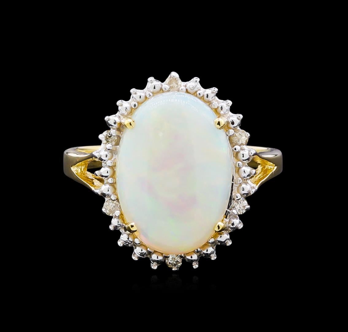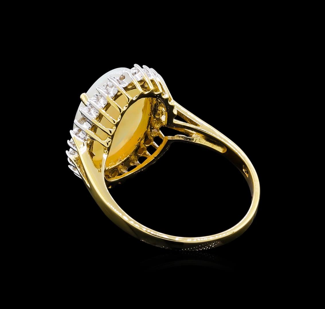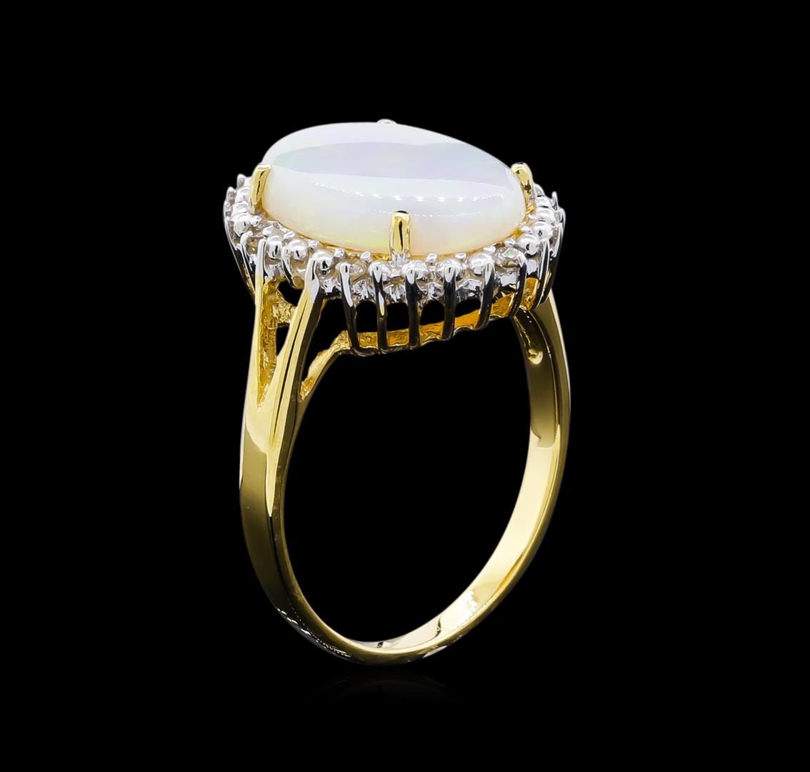 One ring featuring: 18KT yellow gold weighing 4.60 grams containing one opal with a total weight of 2.82ct and diamonds with a total weight of 0.08ct.