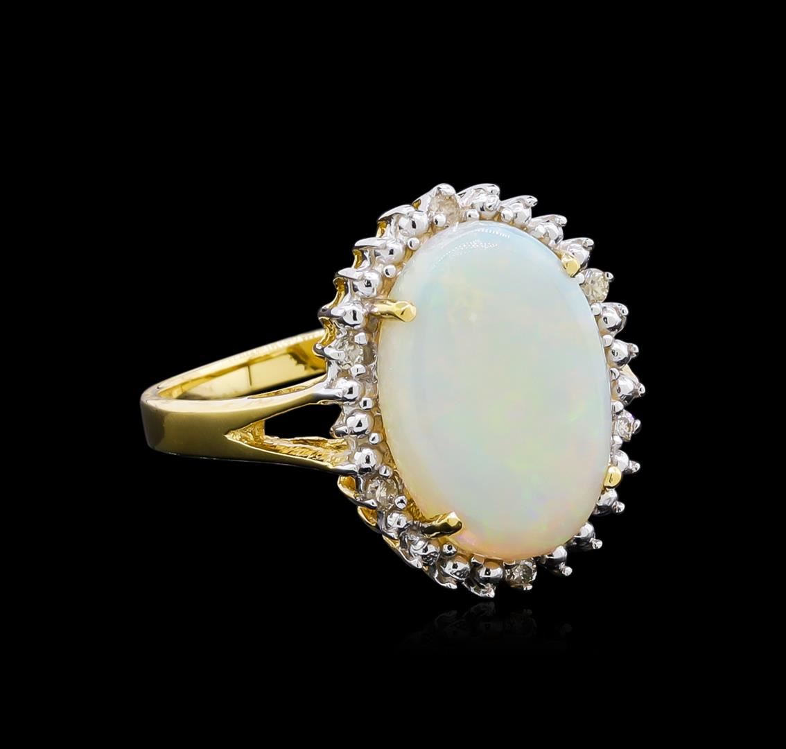 One ring featuring: 18KT yellow gold weighing 4.60 grams containing one opal with a total weight of 2.82ct and diamonds with a total weight of 0.08ct.