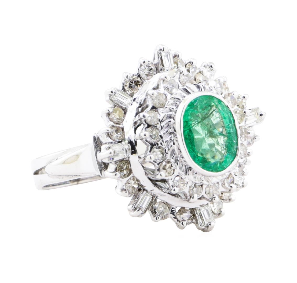 One electronically tested 14KT white gold lady's hand fabricated fashion ballerina double halo ring with a bright polish finish. The featured lady's ring has a shank measuring 3.00 millimeters in width. Condition is Good. Containing: One bezel set oval mo GAS Appraised.