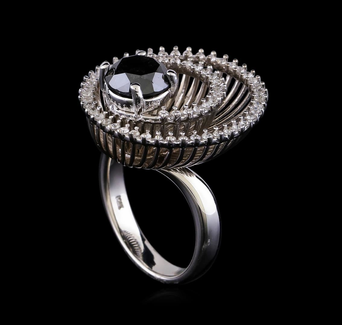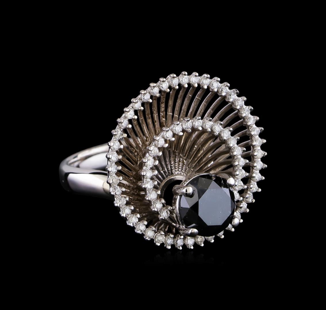 One electronically tested 14KT white gold lady's cast fashion double basket halo with a bright polish finish. The featured lady's ring has a shank measuring 3.2 millimeters in width. Identified with markings of "14K". Condition is new, good workmanship. Containing: One prong set round brilliant cut diamond, measuring 7.70 - 7.68 x 5.54mm (depth est.) , 10.00.%. GTCF approximate weight of 2.30ct. Colored gemstones are presumed to have been subjected to commonly used enhancement processes. Graded in the setting. Clarity: I-1 to I-2 Cut Good Sixty-Five prong set round brilliant cut diamonds, measuring 1.30 - 1.25 x 0.78mm (depth est.) approximate total weight of 65 Stones = 0.55ct. Graded in the setting. Clarity: SI-1 to I-1. Color: G - I. Cut Good. Total Weight of Diamonds 2.85ct. Total Weight of Double Basket Halo 8.40gm. GAS Appraised at $5,955.00.