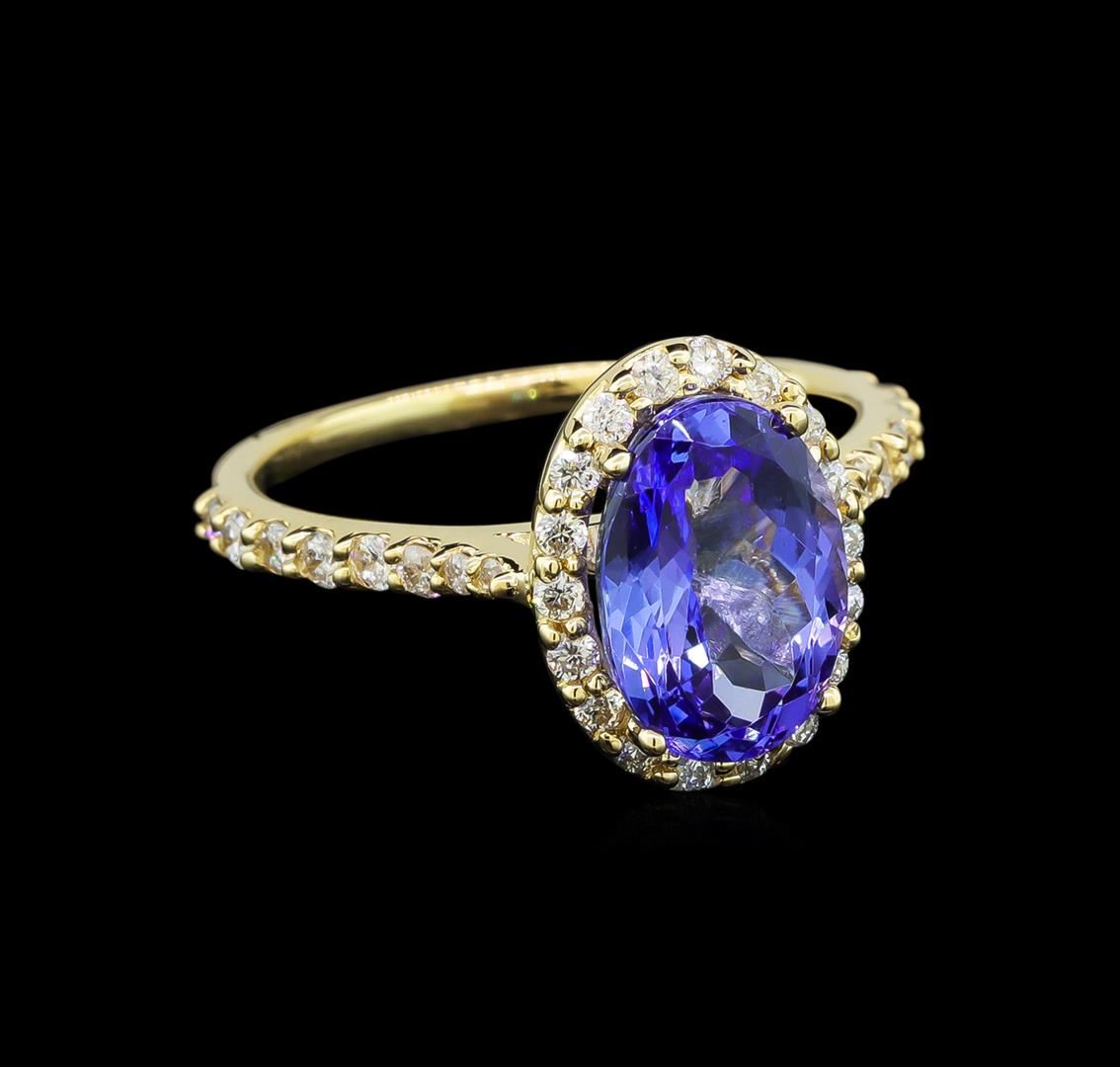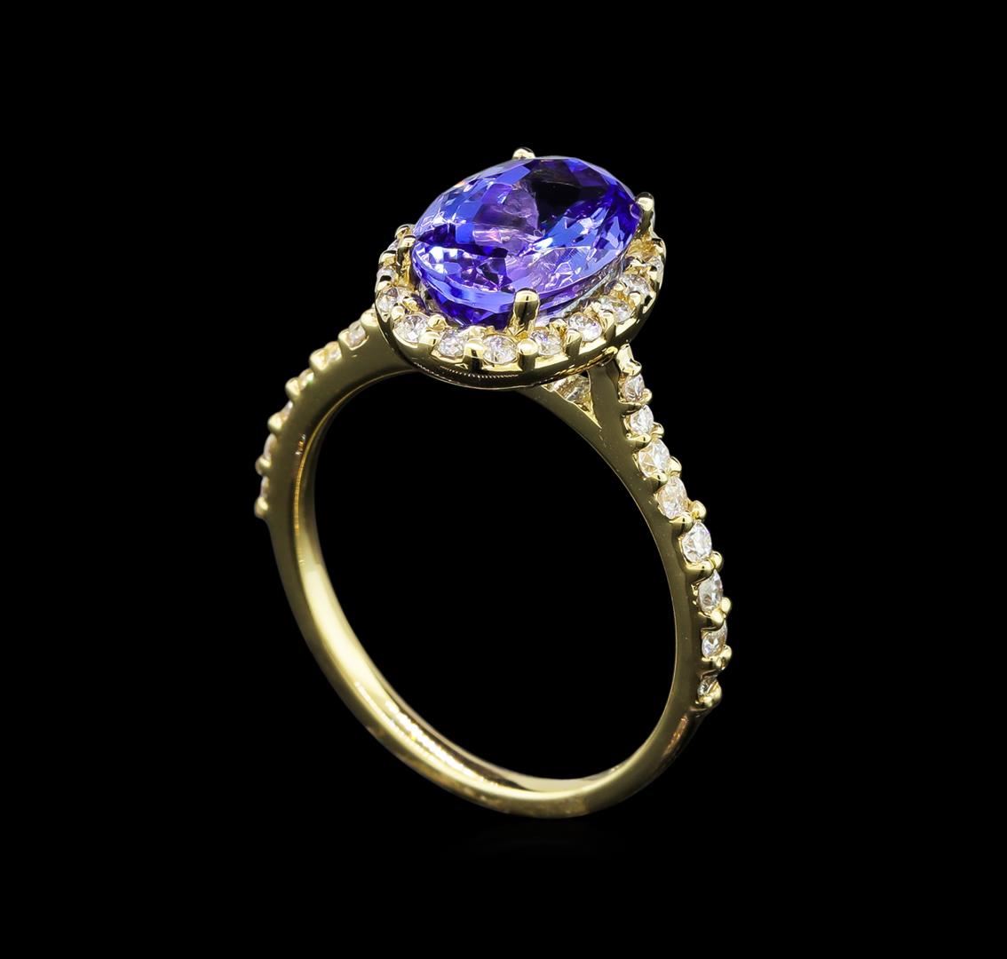 One Ring : 14KT yellow gold weighing 3.35gm containing a tanzanite center stone with a total weight of 2.86ct and side diamonds weighing 0.47ctw.