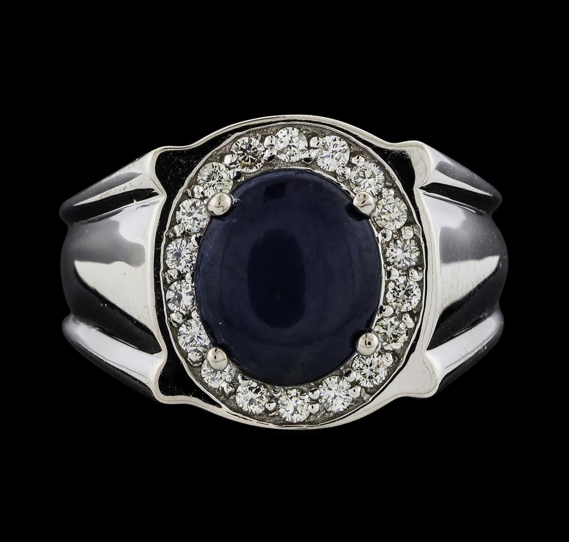 One Sapphire and Diamond Ring featuring: 14KT White Gold with a total weight of 11.98 grams, Sapphire with a total weight of 2.87ct, and 18 diamonds with a total weight of 0.40ctw.