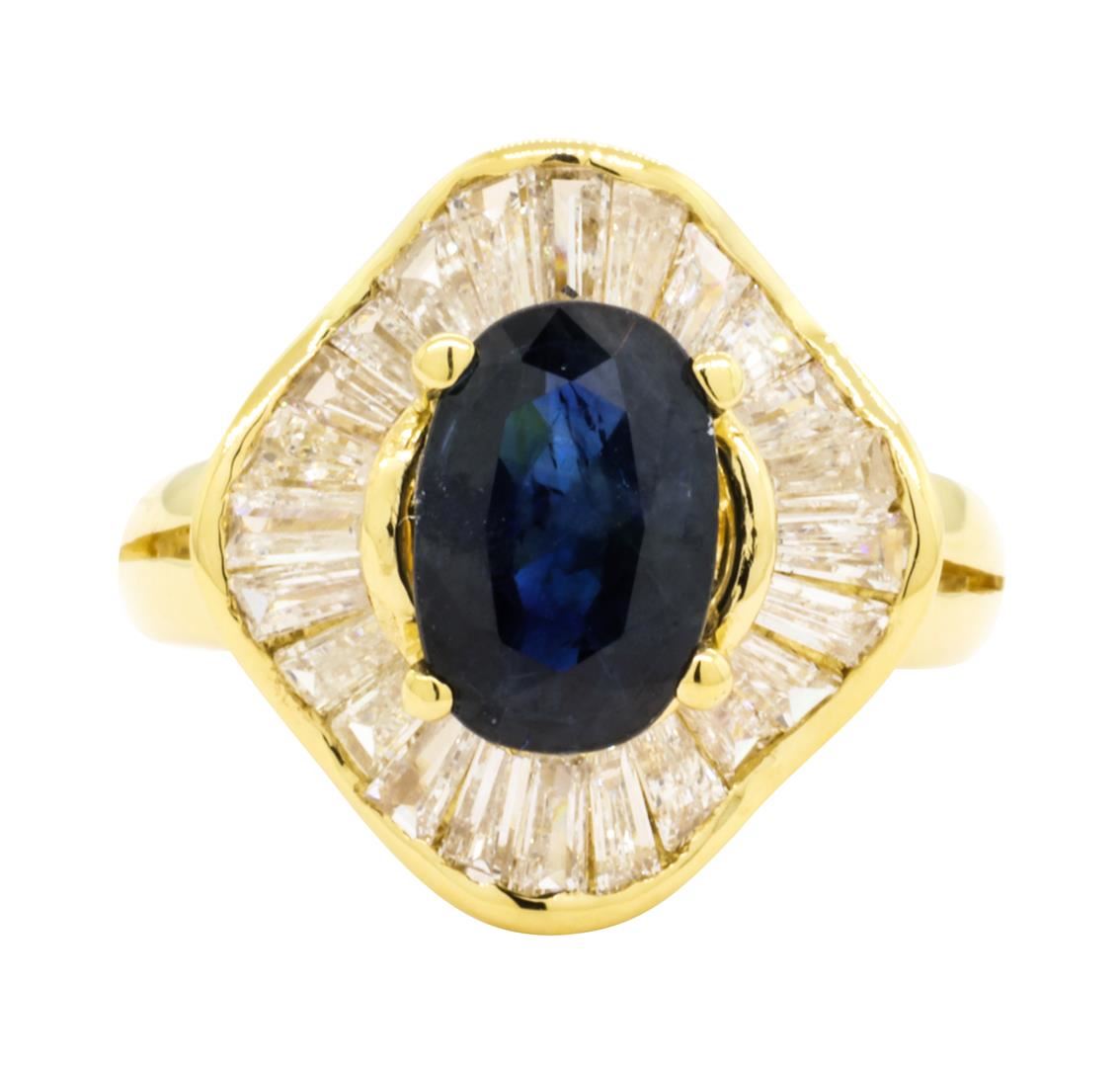 One electronically tested 18KT yellow gold lady's cast fashion ballerina ring with a split shank with a bright polish finish. The featured lady's ring has a shank measuring 2.30 millimeters wide. Identified with markings of '18K'. Condition is like new, g