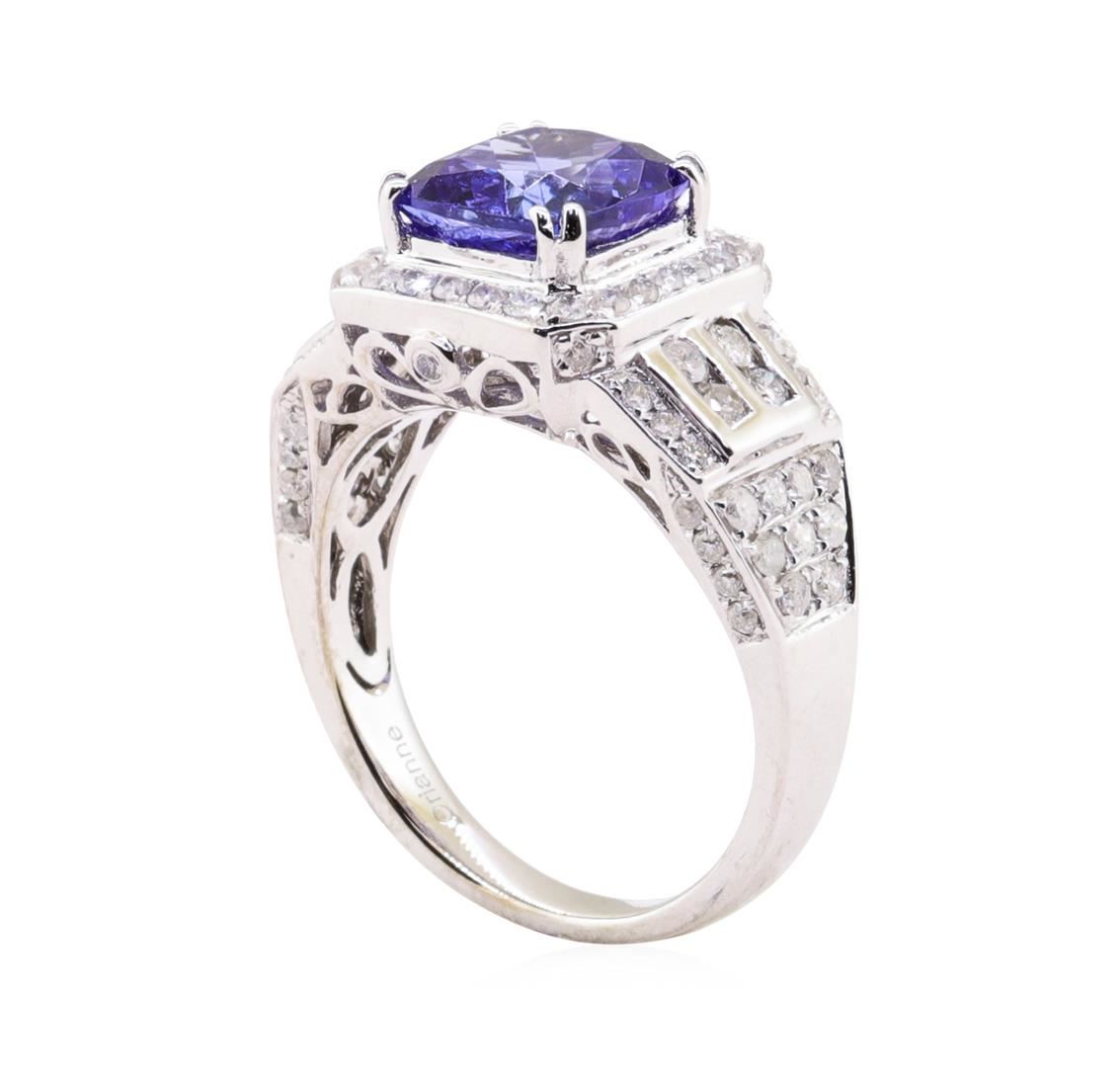 One 2.90 ct Tanzanite and Diamond Ring - 14KT White Gold. AIG certified. See Appraisal for more details. AIG Appraised.