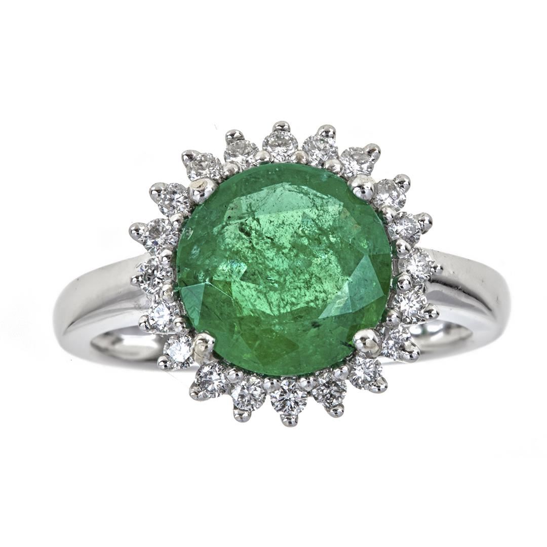 One lady's ring featuring 18KT white gold weighing 4.24 grams containing one emerald weighing 2.91ct and diamonds weighing 0.36ctw.