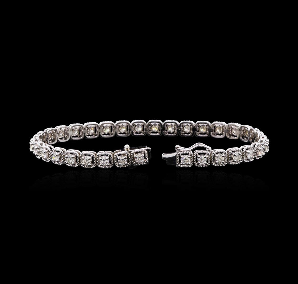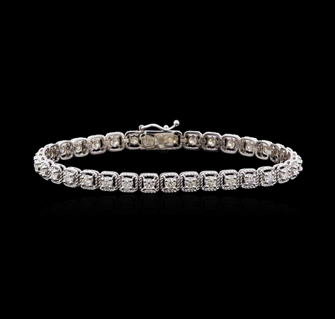 One electronically tested 14KT white gold lady's combination cast & assembled fashion tennis bracelet with a tongue clasp with foldover safety with a bright polish finish. The featured lady's bracelet measures 7 inches in length. Identified with markings of "K14". Condition is new, good workmanship. Containing: Thirty-Five prong set round brilliant cut diamonds, measuring 2.90 - 2.80 x 1.74mm (depth est.) approximate total weight of 35 Stones = 2.92ct. Graded in the setting. Clarity: VS-2 to SI-2. Color: I - Very Good. Total Weight of Diamonds 2.92ct. Total Weight of Tennis Bracelet 12.20gm. GAS Appraised at $9,485.00.