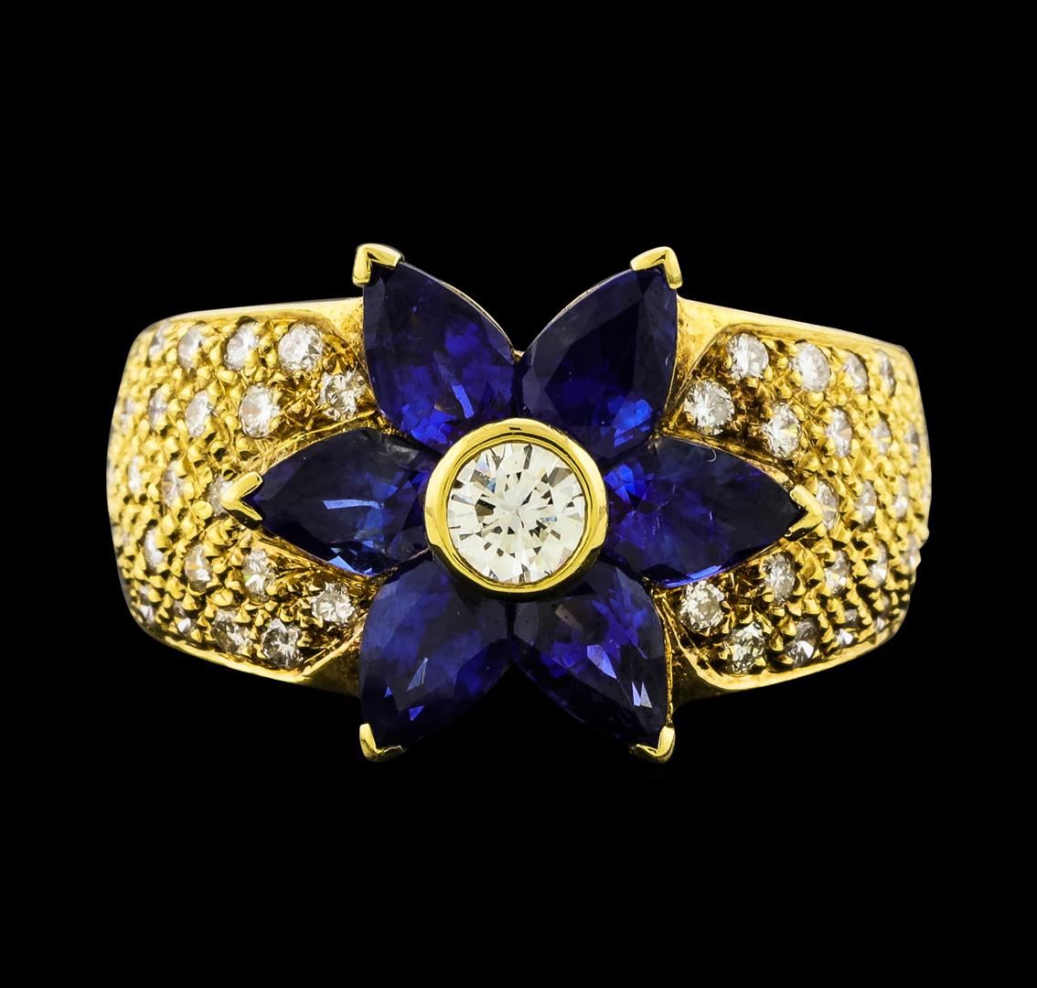 One ring featuring: 18KT Yellow Gold containing Sapphire with a total weight of 2.93ct and Diamonds with a total weight of 0.68ct. Total Weight of Ring: 7.1 grams.
