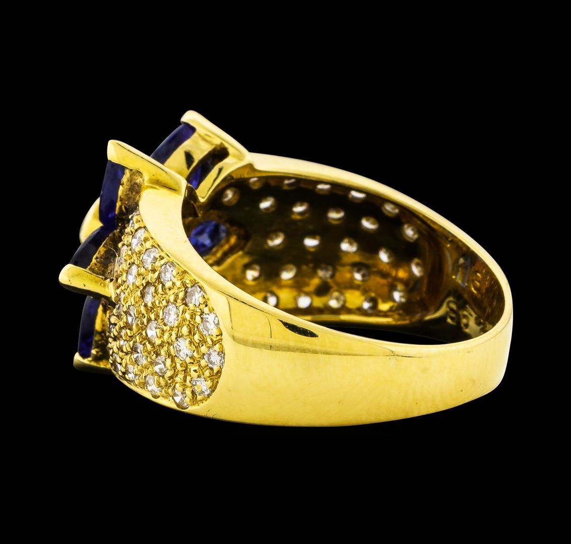 One ring featuring: 18KT Yellow Gold containing Sapphire with a total weight of 2.93ct and Diamonds with a total weight of 0.68ct. Total Weight of Ring: 7.1 grams.