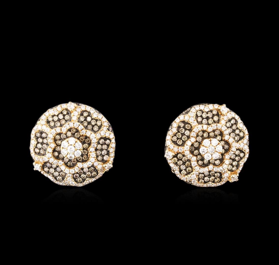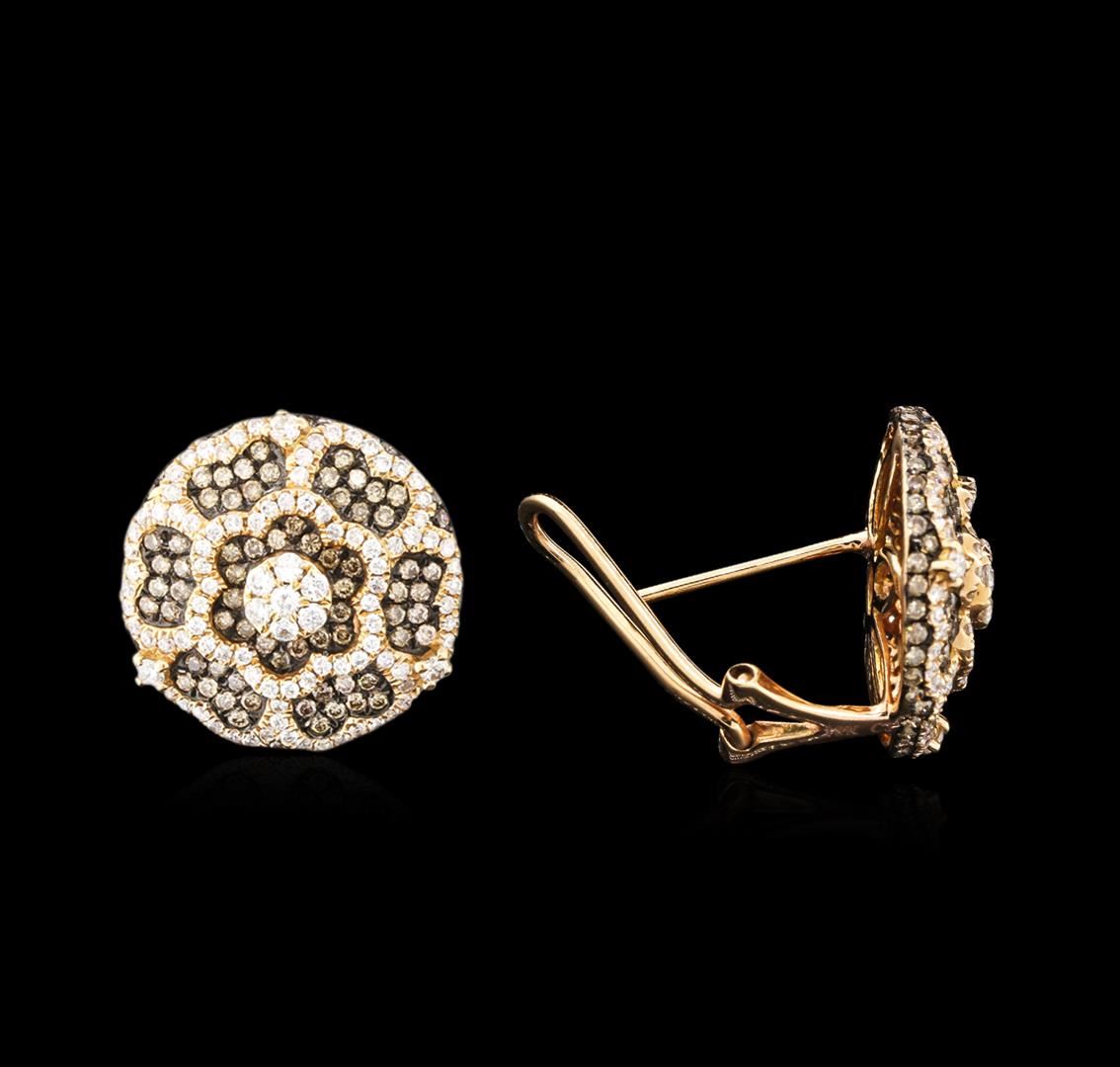 One pair electronically tested 18KT rose gold ladies cast diamond earrings with Omega clip backs with a bright polish finish. Identified with markings of "18K". Condition is new. Containing: Two Hundred Twenty-Eight prong set round brilliant cut diamonds, measuring 1.30 - 1.30 x 0.78mm (depth est.) approximate. Total Weight of 228 Stones = 1.82ct. Clarity: SI-2 to I-2, Cut is Good. One Hundred Forty prong set round brilliant cut diamonds, measuring 1.50 - 1.10 x 0.78mm (depth est.) approximate. Total Weight of 140 Stones = 1.12ct. Clarity: SI-2 to I-1. Color: J - K, Cut is Good. Diamonds are graded in the mounting, unless otherwise stated. Total Weight of Diamonds 2.94ct. Total Weight of Earrings 9.80 grams. GGL Appraised at $4,525.00.