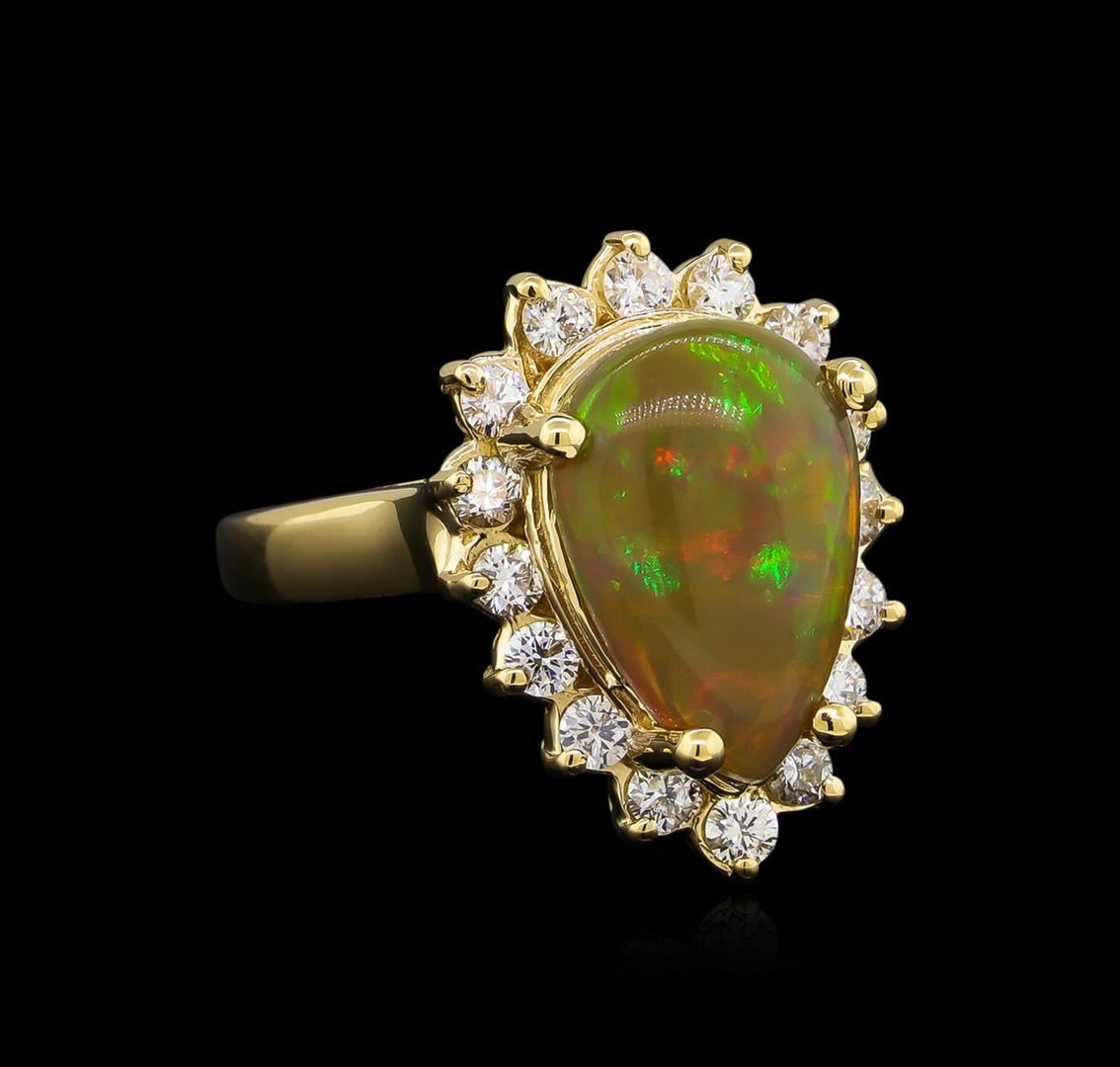 One ring featuring: 14KT yellow gold weighing 6.47 grams containing one opal with a total weight of 2.95ct and side diamonds with a total weight of 0.66ct.