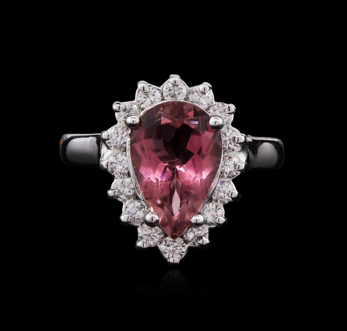 One ring featuring: 14KT white gold weighing 5.66 containing one pink tourmaline with a total weight of 2.96ct and diamonds with a total weight of 0.47ct.