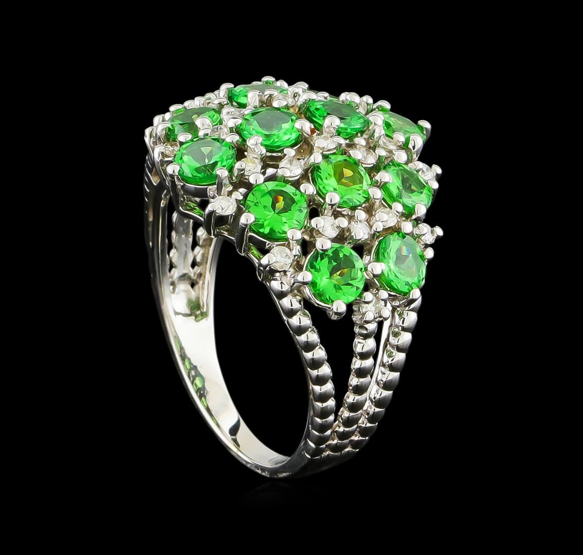 One Ring featuring: 14KT White Gold weighing 5.07 grams containing one Tsavorite-Multi center stone with a total weight of 2.97ct and Diamonds with a total weight of 0.25ct.