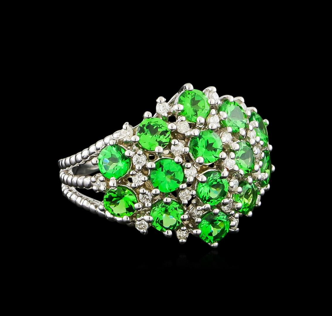 One Ring featuring: 14KT White Gold weighing 5.07 grams containing one Tsavorite-Multi center stone with a total weight of 2.97ct and Diamonds with a total weight of 0.25ct.