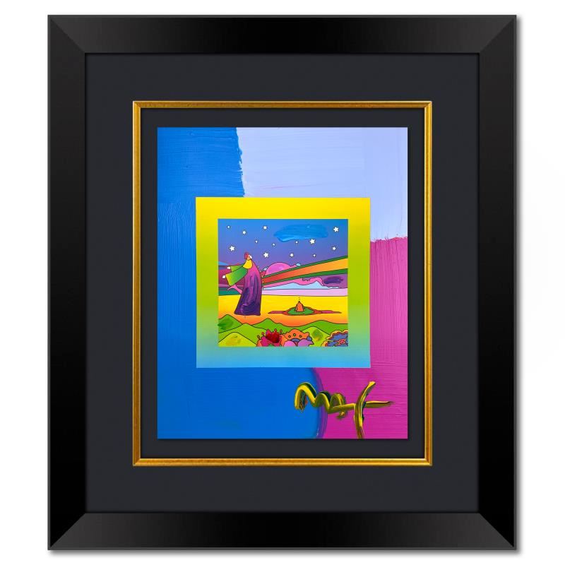 "2 Sages with Stars" is a one-of-a-kind mixed media on paper, hand signed by Peter Max. The piece comes custom framed with a backside cutout to display Peter Max Studio registration number 247576 certifying authenticity. Measures approximately 28" x 24" (frame), 19" x 15" (image). This item requires special handling and may have a longer than usual turnaround.