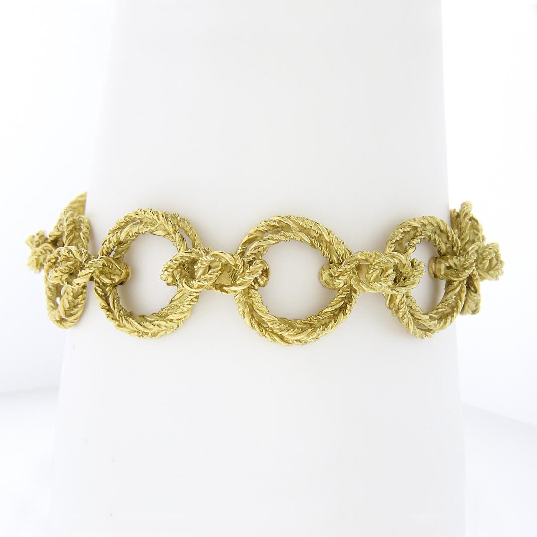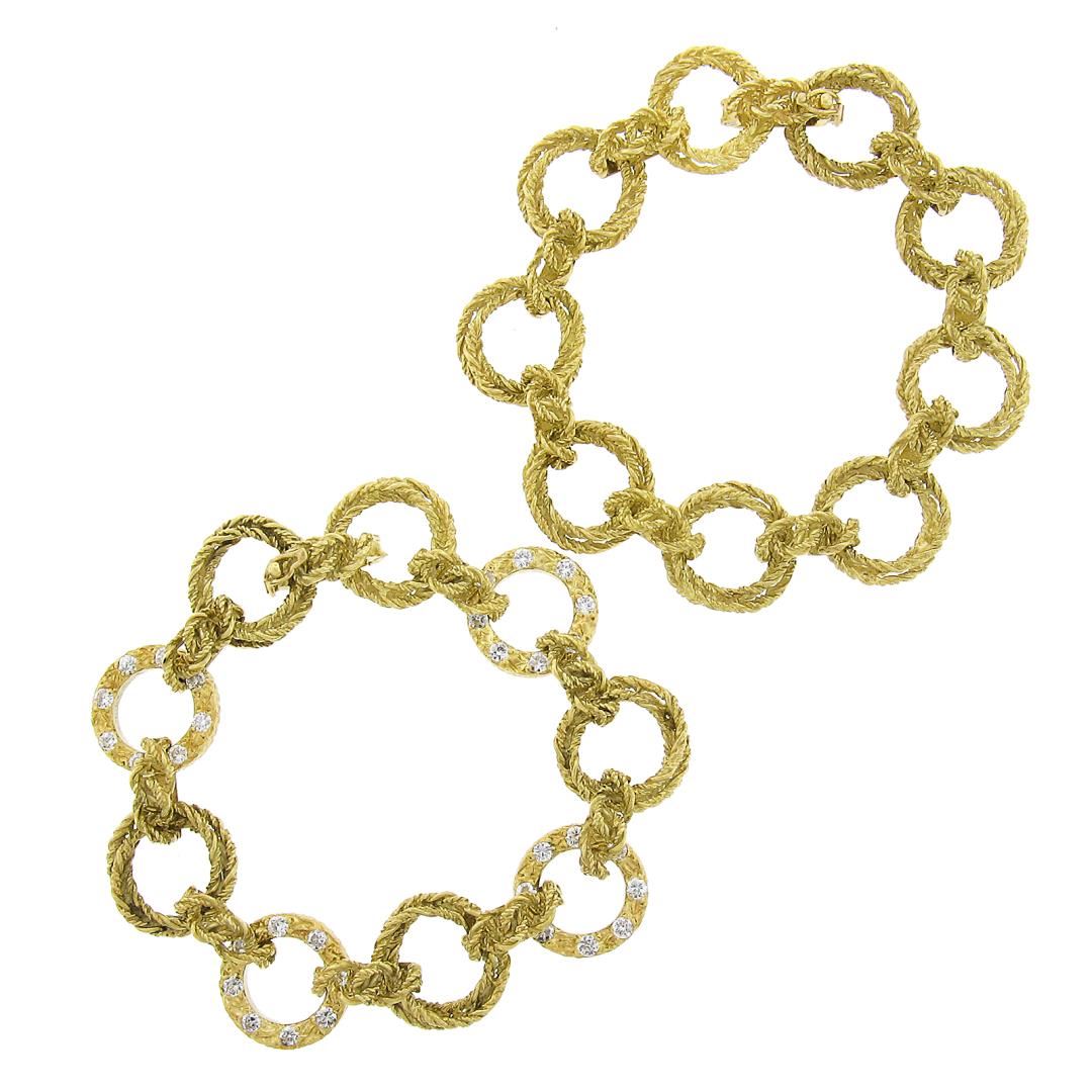 (2) Vintage 18k Gold Interlocking Textured Twisted Wire w/ Diamond Bracelet Set