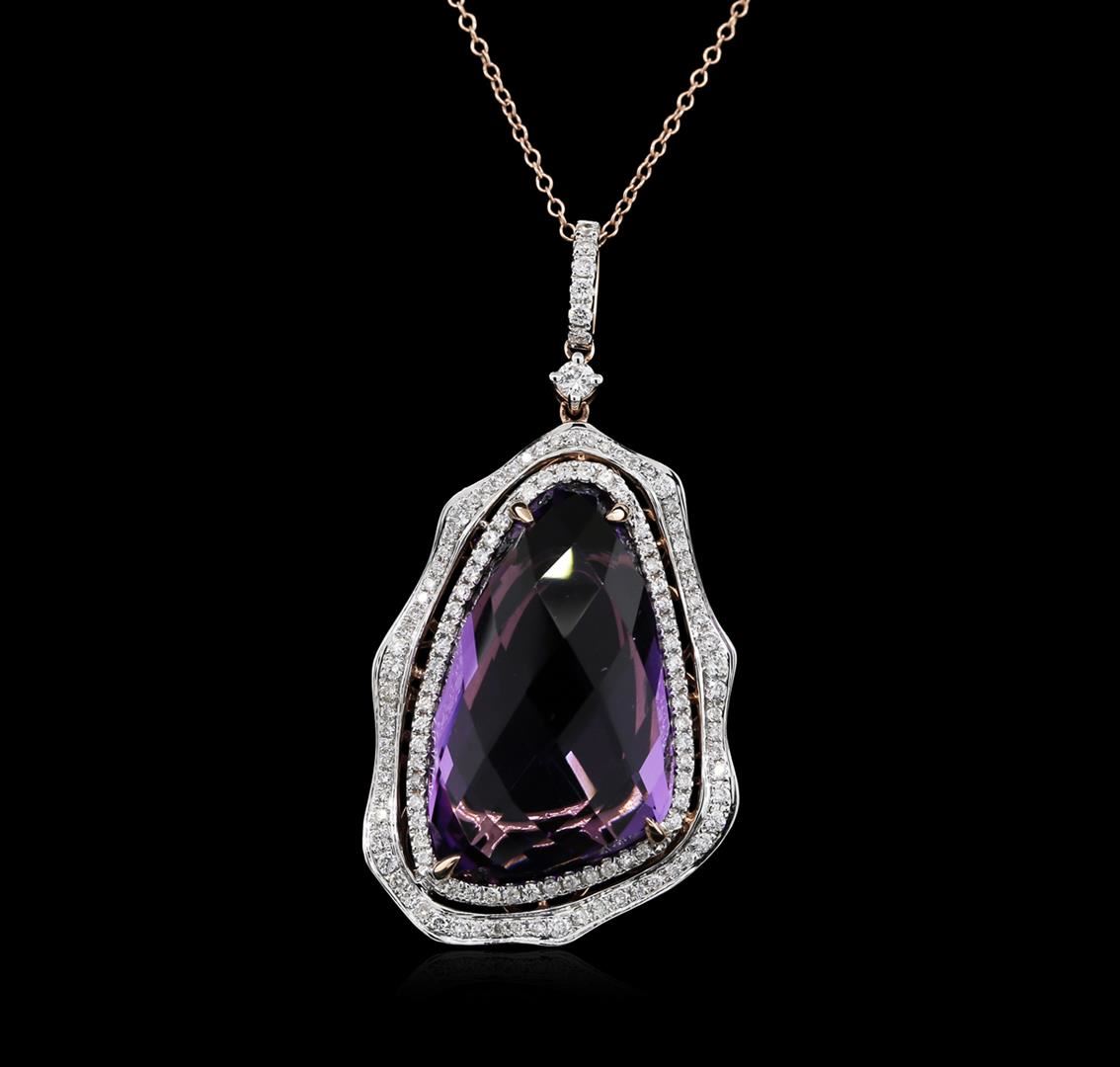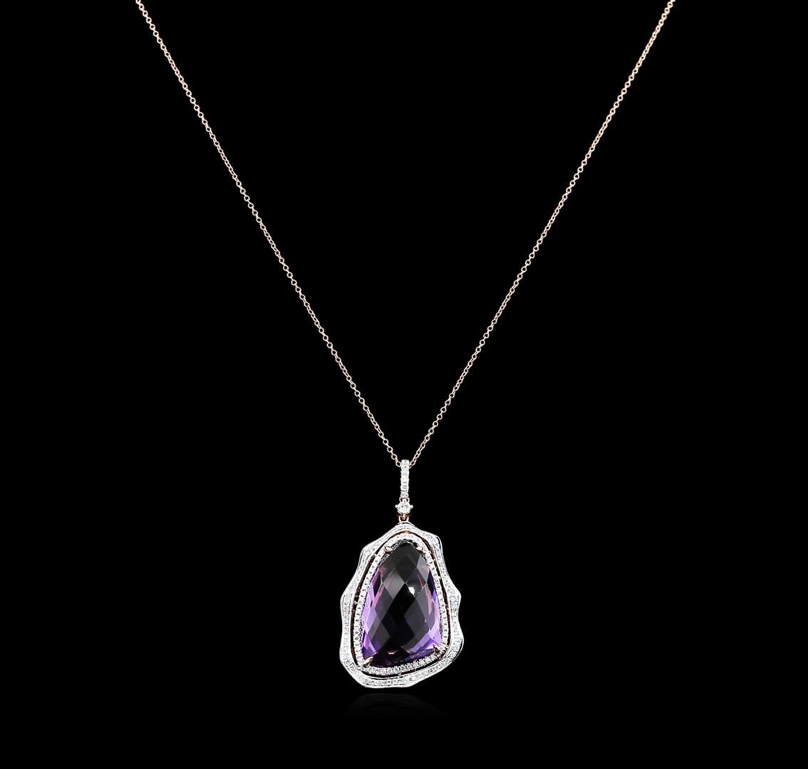One pendant featuring: 14KT rose gold weighing 5.60 grams containing 1 amethyst with a total weight of 20.23ct and diamonds with a total weight of 0.79ct.