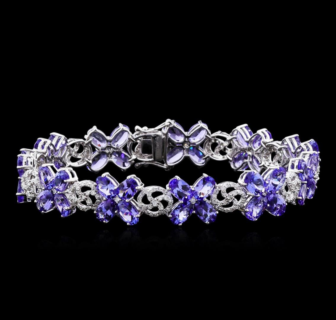 One 14KT white gold ladies Michael Christoff bracelet weighing a total of 15.00 grams. Containing: 44 Natural Tanzanites: Weight: Total 20.51ct. Measurements: 5.70 x 3.80 x 2.90mm. Shape & Cutting: Oval-shaped, mixed-cut. Color: Medium purple-blue, very even color. Cut & Polish: Very good. Transparency: Transparent. The tanzanites are complemented by 275 round, brilliant-cut diamonds with a total weight of 1.66ct. Clarity Grade: SI2 - I1. Color Grade: H. GLS Appraised at $22,400.00.
