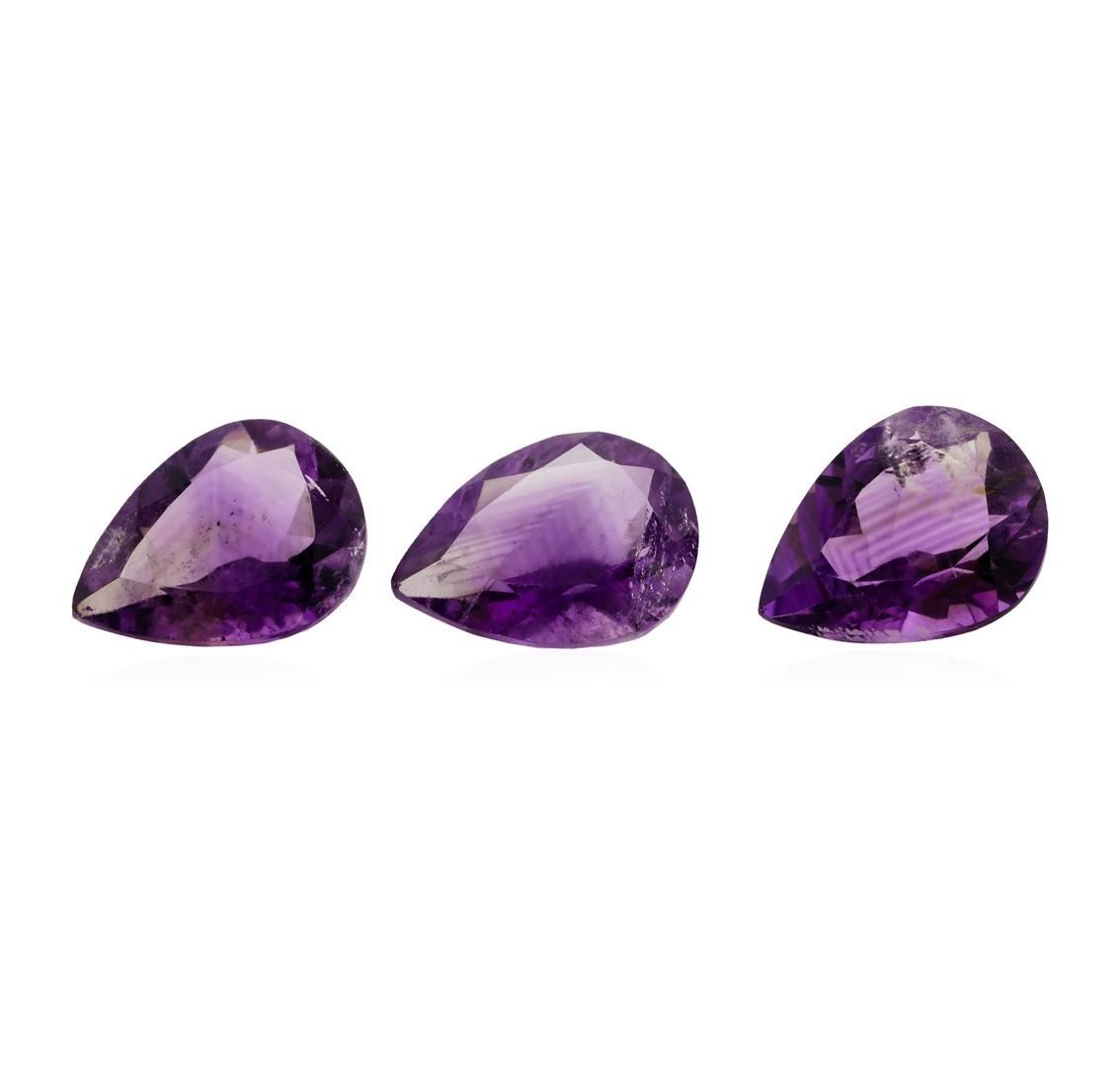 One natural pear cut amethyst parcel of three with an exact weight of 20.56ctw., clarity is moderately included, v.s. brownish purple, medium to medium light. Gemological Appraisals Services estimates the retail value at $616.8 GAS Appraised.