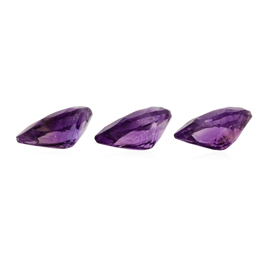 One natural pear cut amethyst parcel of three with an exact weight of 20.56ctw., clarity is moderately included, v.s. brownish purple, medium to medium light. Gemological Appraisals Services estimates the retail value at $616.8 GAS Appraised.